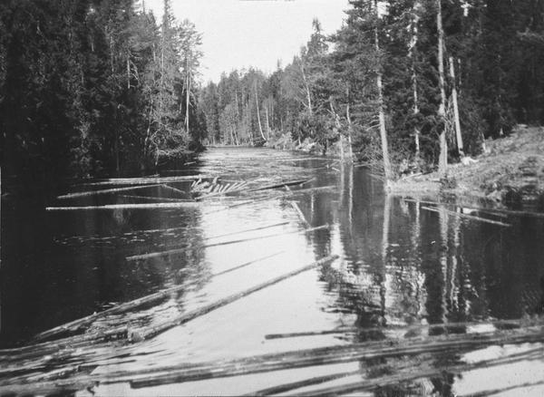 fløyte tømmer, føre tømmer nedover elvevassdrag, tømmerfløting. |