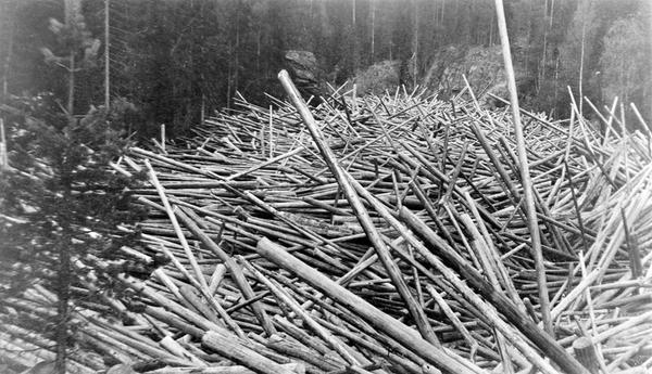 tømmervase, floke av festna tømmerstokker |