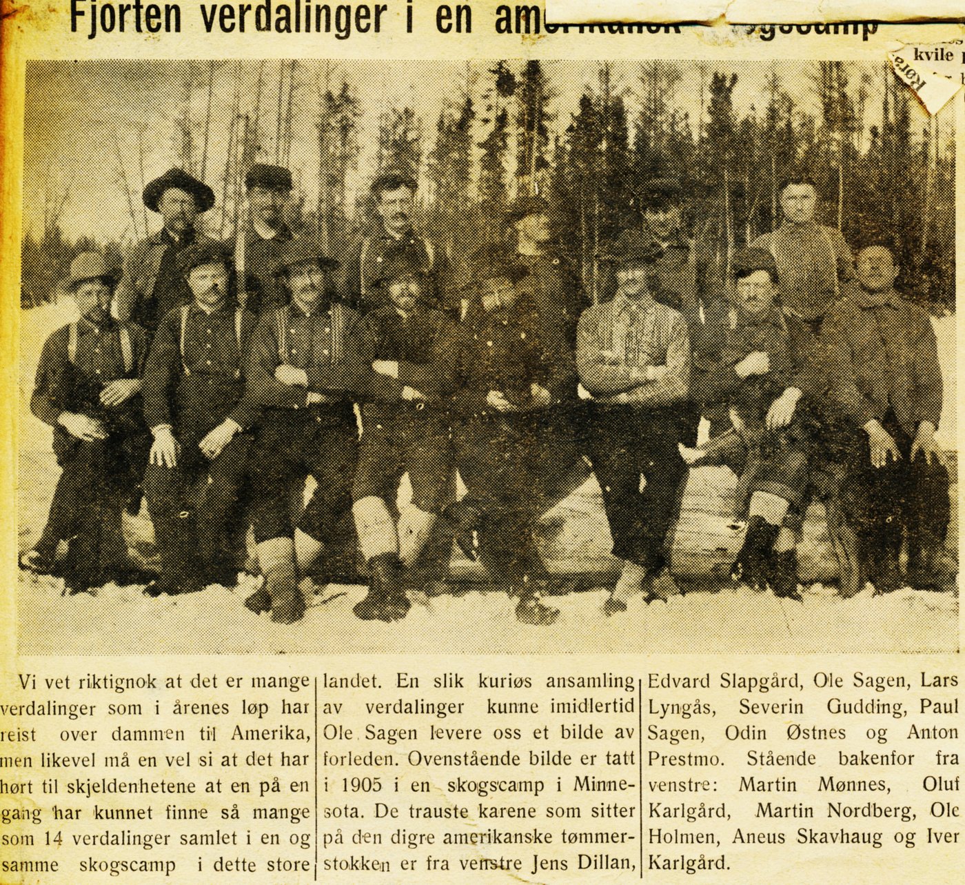 1955? Avisutklipp 14 verdalinger på skogscamp i Minnesota i 1905
