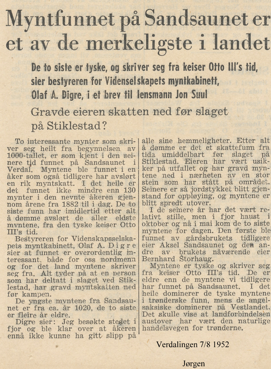 1952 Avisutklipp Merkelig myntfunn på Sandsaunet
