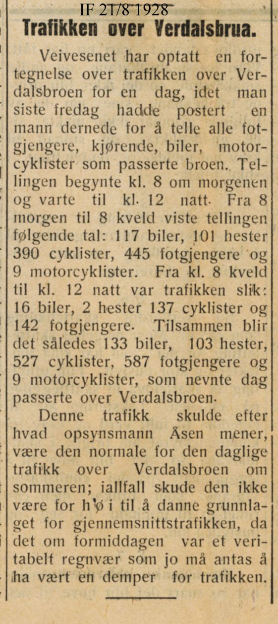 1928 Avisutklipp Trafikktelling i 1928!