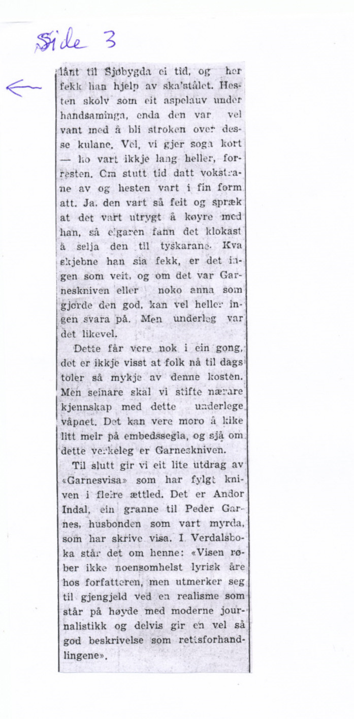 1952 Avisutklipp Den mystiske kniven fra Sjøbygda