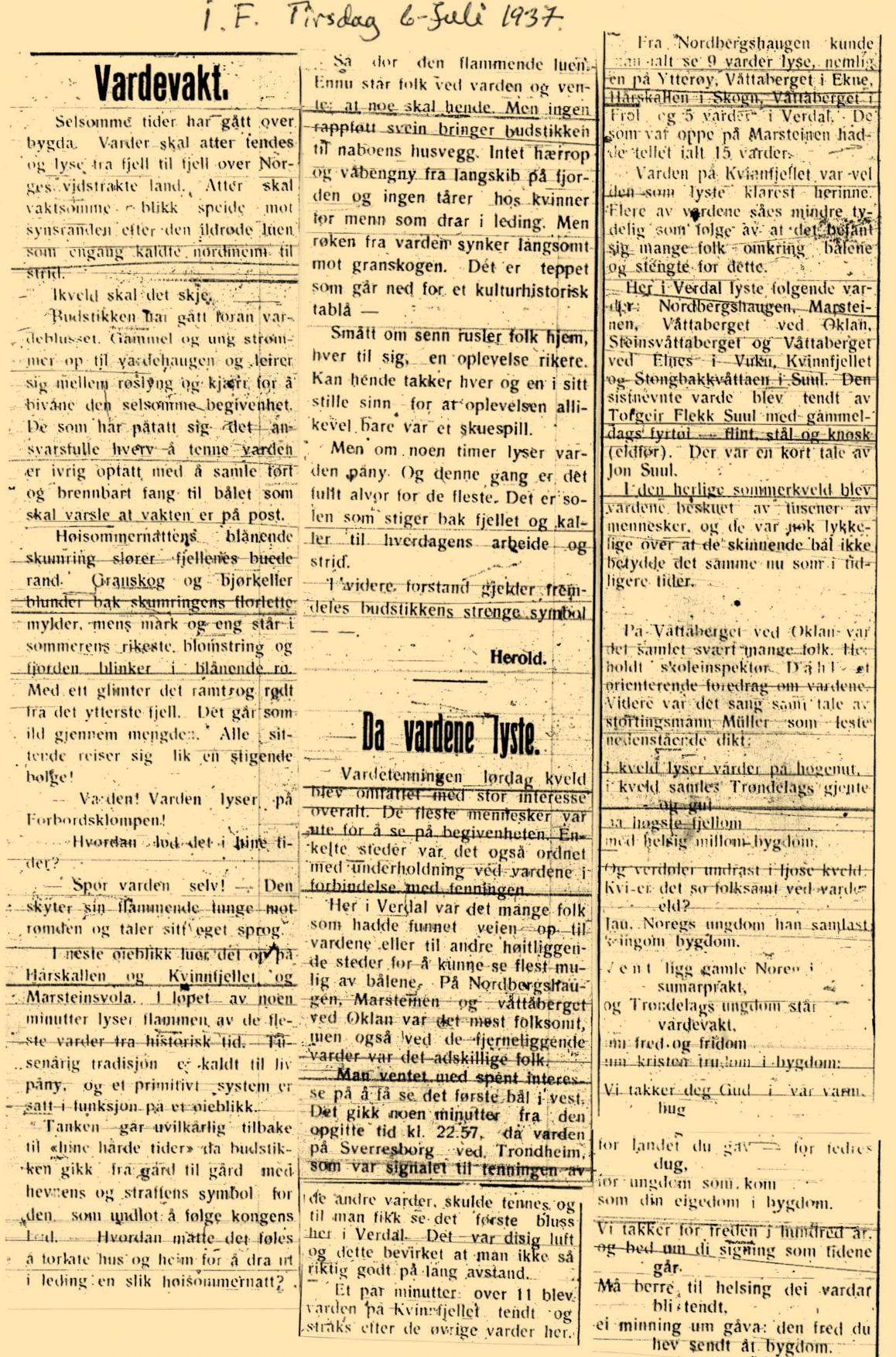 1937 Avisutklipp Da vardene lyste i 1937