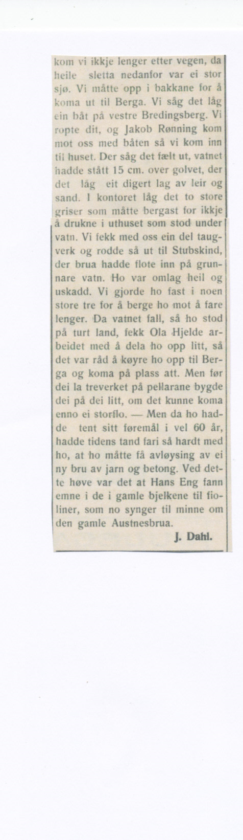 1958 Avisutklipp Den gamle Østnesbrua, Hærfossen og fiolinene til Hans Eng