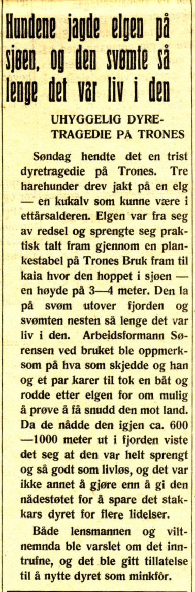 Hundene jagde elgen på sjøen, og den svømte så lenge det var liv i den.