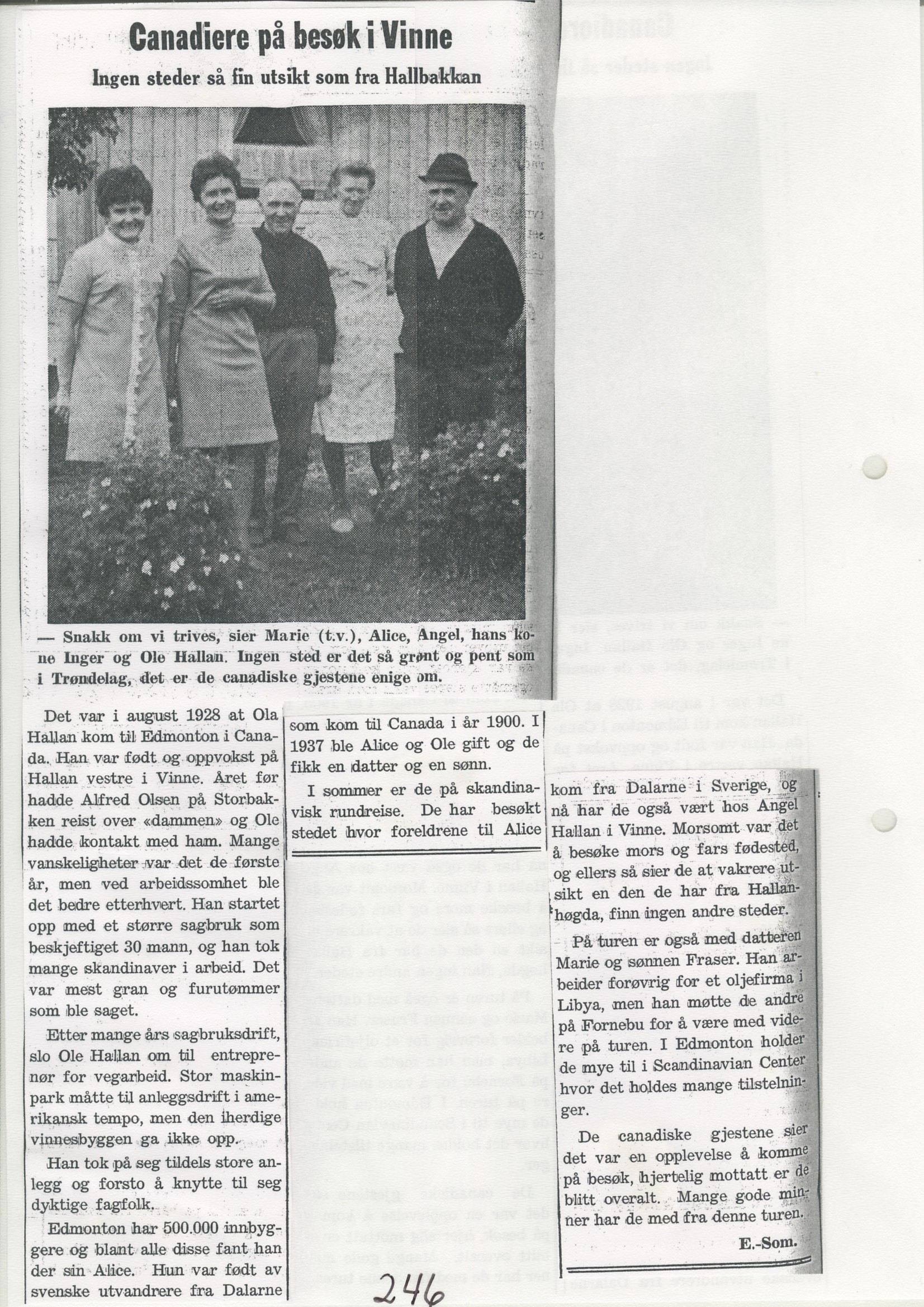 1970 Avisutklipp Canadiere på besøk hos Ole Hallan i Vinne.