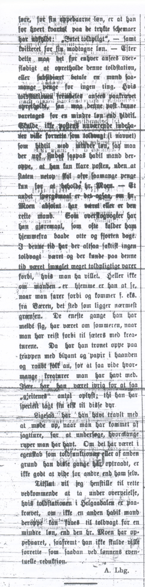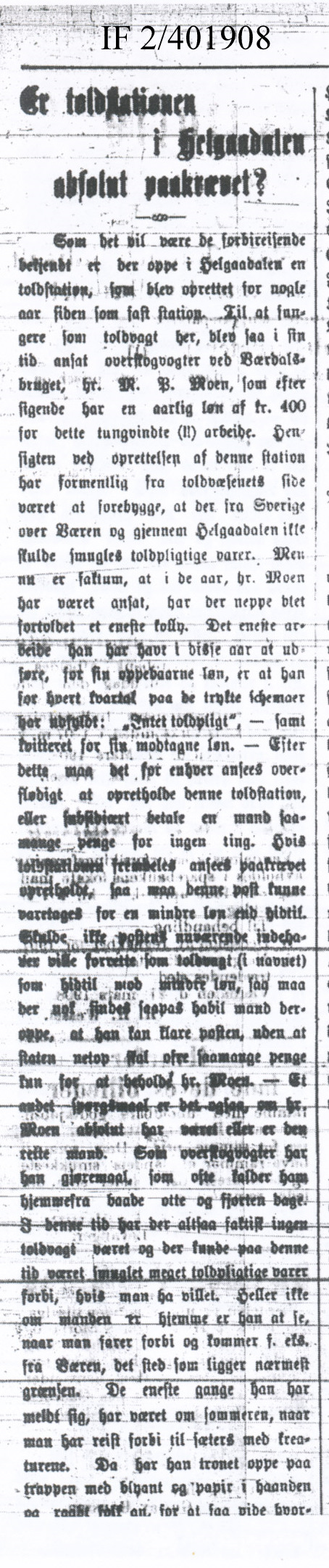 1908 Avisutklipp Tollstasjonen i Helgådalen