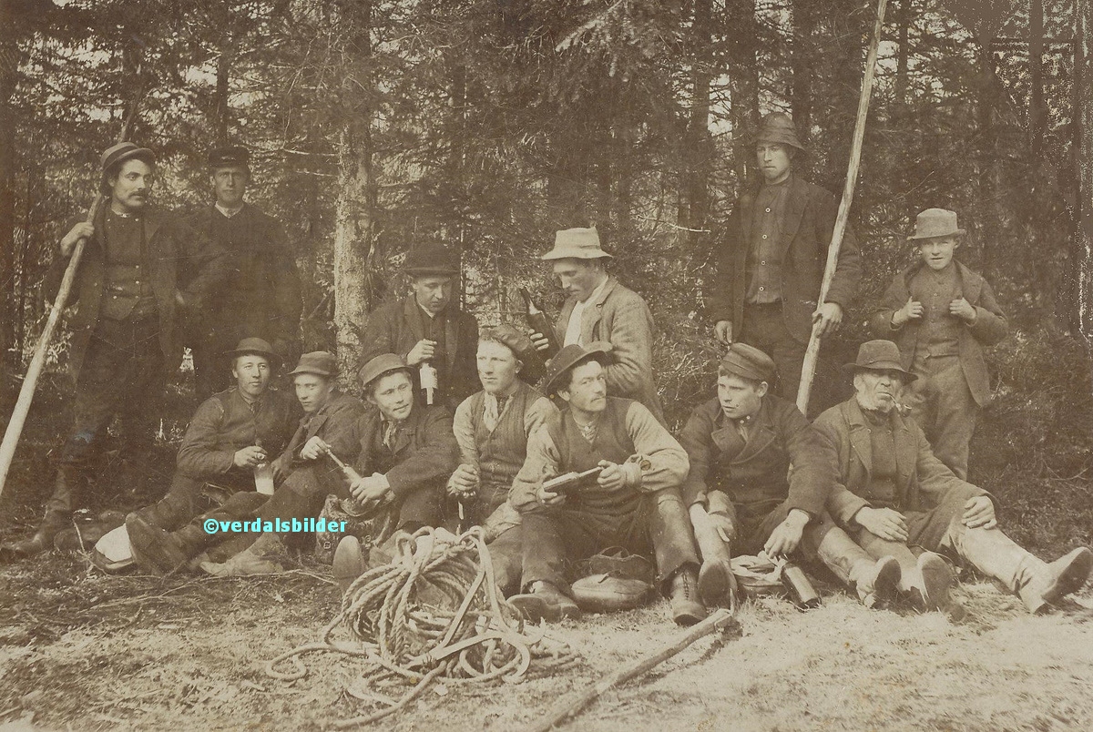 Fløtingsmannskap i Saghølet i 1898. -- Utlånt og navnsatt av Svein Guddingsmo. Fotograf br. Eilertsen på grindgjerdet. Har du korrigeringer, nye navn eller en kommentar? Ring eller send sms til 472 97 311 eller 456 00 950 Det beste er å sende en E-post til: post@verdalsbilder.no Tips noen om dette bildet : Klikk her Forstørre bildet Bruk ctrl-knapp + musehjul oppover for å forstørre bildet. Bruk ctrl-knapp + musehjul nedover for å forminske bildet Du kan også bruke "ctrl-knapp" samtidig med "+" og "-" på det numeriske tastaturet. "Ctrl" og "*" (eller null) tilbakestiller størrelsen | ||||