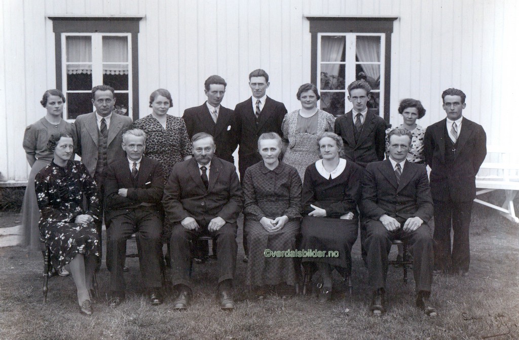Smeden Karl Ranheim med famlie på sin 70-årsdag i 1939 -- Her med andre ektefelle, barn og svigerbarn på Ranheim. Har du korrigeringer, nye navn eller en kommentar? Ring eller send sms til 472 97 311 eller 456 00 950 Det beste er å sende en E-post til: post@verdalsbilder.no Tips noen om dette bildet : Klikk her Forstørre bildet Bruk ctrl-knapp + musehjul oppover for å forstørre bildet. Bruk ctrl-knapp + musehjul nedover for å forminske bildet Du kan også bruke "ctrl-knapp" samtidig med "+" og "-" på det numeriske tastaturet. "Ctrl" og "*" (eller null) tilbakestiller størrelsen | ||||