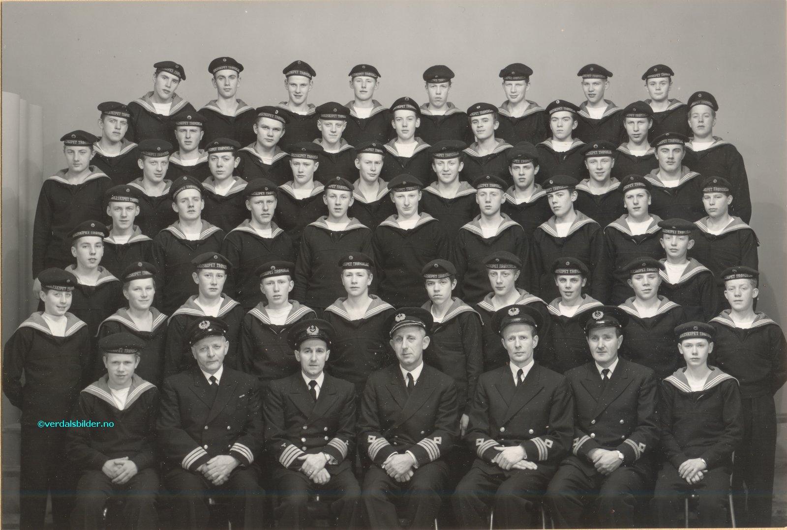 V -- Sju av disse er verdalinger. Og en levangsbygg. Etter 2 måneder på skoleskipet dro de sju guttene på 15 i med Ms Oslofjord til New York i desember 1959. Her mønstret de på i tur og orden. Ingen av dem kom på samme båt. Knut Wass forteller: Jeg mønstret lille julaften som messegutt. Og det var ikke fritt for at det ble felt noen tårer over oppvasken i byssa den første tiden. I Vancouver 7 måneder etterpå fikk vi norske aviser ombord. Her leste jeg om romfarten i Verdal i 1960. Og jeg ble kalt for romfareren. Har du korrigeringer, nye navn eller en kommentar? Ring eller send sms til 472 97 311 eller 456 00 950 Det beste er å sende en E-post til: post@verdalsbilder.no Tips noen om dette bildet : Klikk her Forstørre bildet Bruk ctrl-knapp + musehjul oppover for å forstørre bildet. Bruk ctrl-knapp + musehjul nedover for å forminske bildet Du kan også bruke "ctrl-knapp" samtidig med "+" og "-" på det numeriske tastaturet. "Ctrl" og "*" (eller null) tilbakestiller størrelsen | ||||