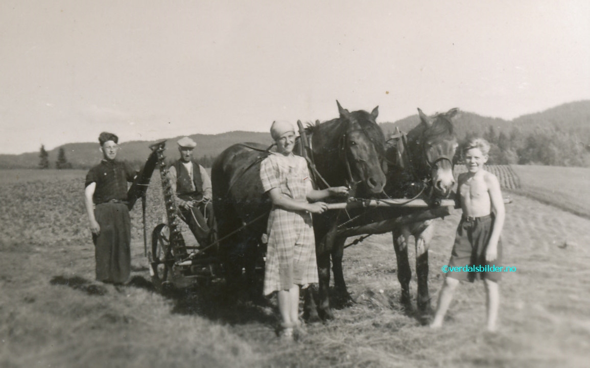 Ved slåmaskina under slottonna i Skrove omkring år 1943. Utlånt -- Har du korrigeringer, nye navn eller en kommentar? Ring eller send sms til 472 97 311 eller 456 00 950 Det beste er å sende en E-post til: post@verdalsbilder.no Tips noen om dette bildet : Klikk her Forstørre bildet Bruk ctrl-knapp + musehjul oppover for å forstørre bildet. Bruk ctrl-knapp + musehjul nedover for å forminske bildet Du kan også bruke "ctrl-knapp" samtidig med "+" og "-" på det numeriske tastaturet. "Ctrl" og "*" (eller null) tilbakestiller størrelsen | ||||