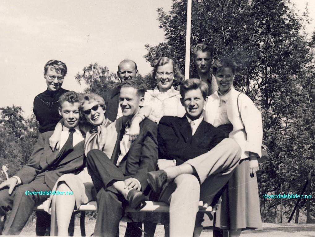 Ungdomslaget "Glimt" og The Monn keys på Stiklestad i 1954. -- Solveig Ness skriver: Vi var en gjeng fra ungdomslaget "Glimt" som fikk med oss