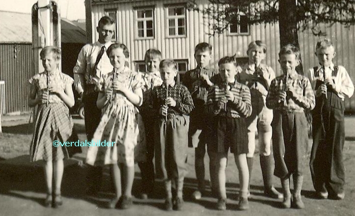 | Blokkfløytekurs ved Vinne skole omkring 1953 .. Se flere navnsatte bilder Før markør opp til haka på personene for å få opp navn |
