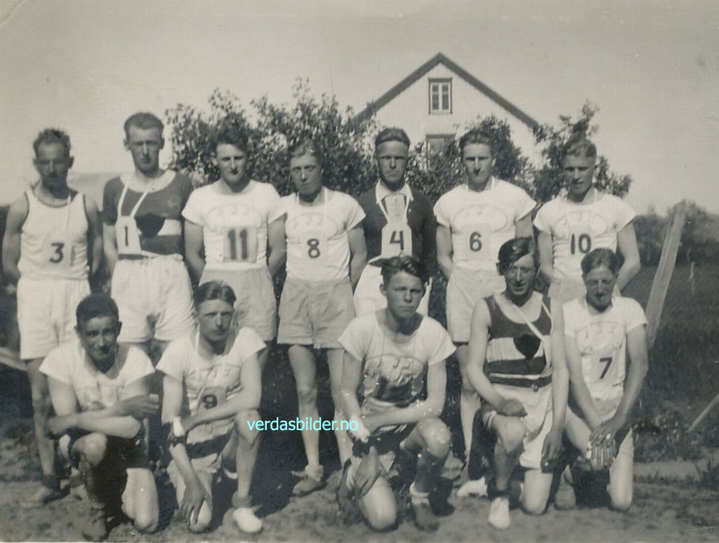 Fridrettsgutter ved Folkets Hus omkring 1936. -- Kan det være utøvere fra idrettslaget Falk på Ørmelen? Utlånt av Kjell Solvold. Navnsatt av Solveig Ness.