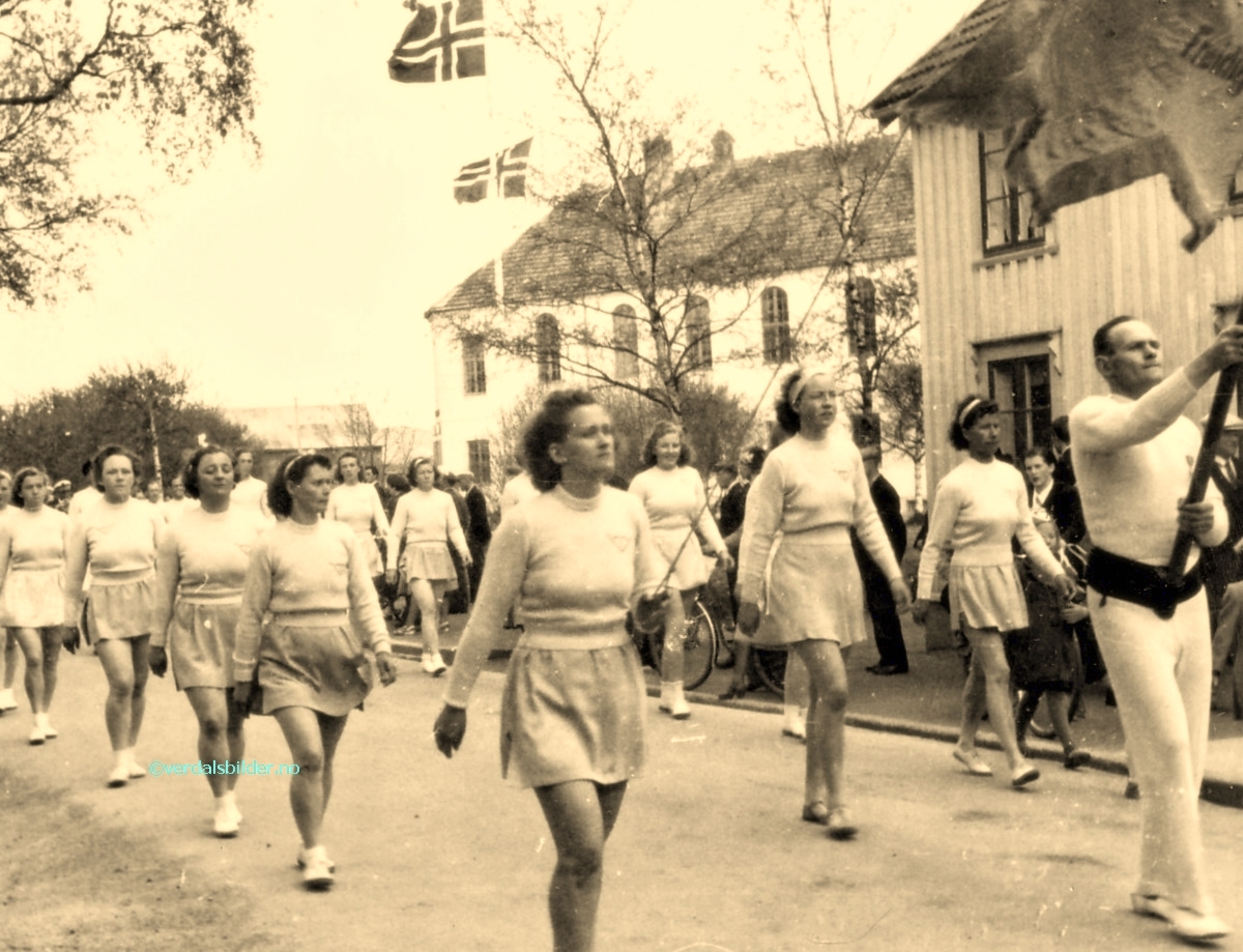 Turndamer marsjerer i 17.mai-toget i 1949 -- Utlånt av Kjell Solvold. Hjelp til navnsetting, Turid Nordli og Kari Nordli Har du korrigeringer, nye navn eller en kommentar? Ring eller send sms til 472 97 311 eller 456 00 950 Det beste er å sende en E-post til: post@verdalsbilder.no Tips noen om dette bildet : Klikk her Forstørre bildet Bruk ctrl-knapp + musehjul oppover for å forstørre bildet. Bruk ctrl-knapp + musehjul nedover for å forminske bildet Du kan også bruke "ctrl-knapp" samtidig med "+" og "-" på det numeriske tastaturet. "Ctrl" og "*" (eller null) tilbakestiller størrelsen | ||||