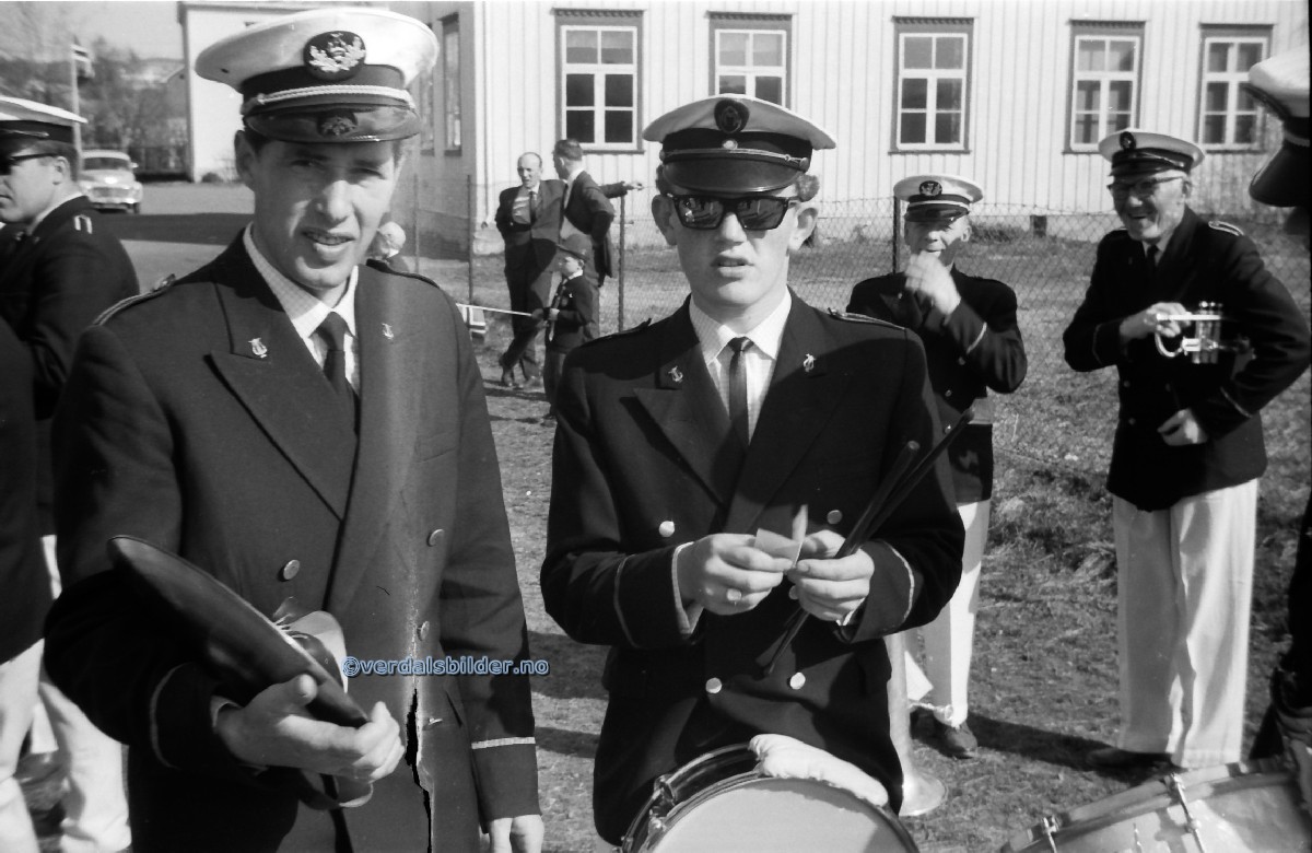 Musikere i Arbeidernes Musikkorps 17.mai i 1963 . -- Dirigent var Johan Solberg. Utlånt og navnsatt av Harald Lyng. Har du korrigeringer, nye navn eller en kommentar? Ring eller send sms til 472 97 311 eller 456 00 950 Det beste er å sende en E-post til: post@verdalsbilder.no Tips noen om dette bildet : Klikk her Forstørre bildet Bruk ctrl-knapp + musehjul oppover for å forstørre bildet. Bruk ctrl-knapp + musehjul nedover for å forminske bildet Du kan også bruke "ctrl-knapp" samtidig med "+" og "-" på det numeriske tastaturet. "Ctrl" og "*" (eller null) tilbakestiller størrelsen | ||||