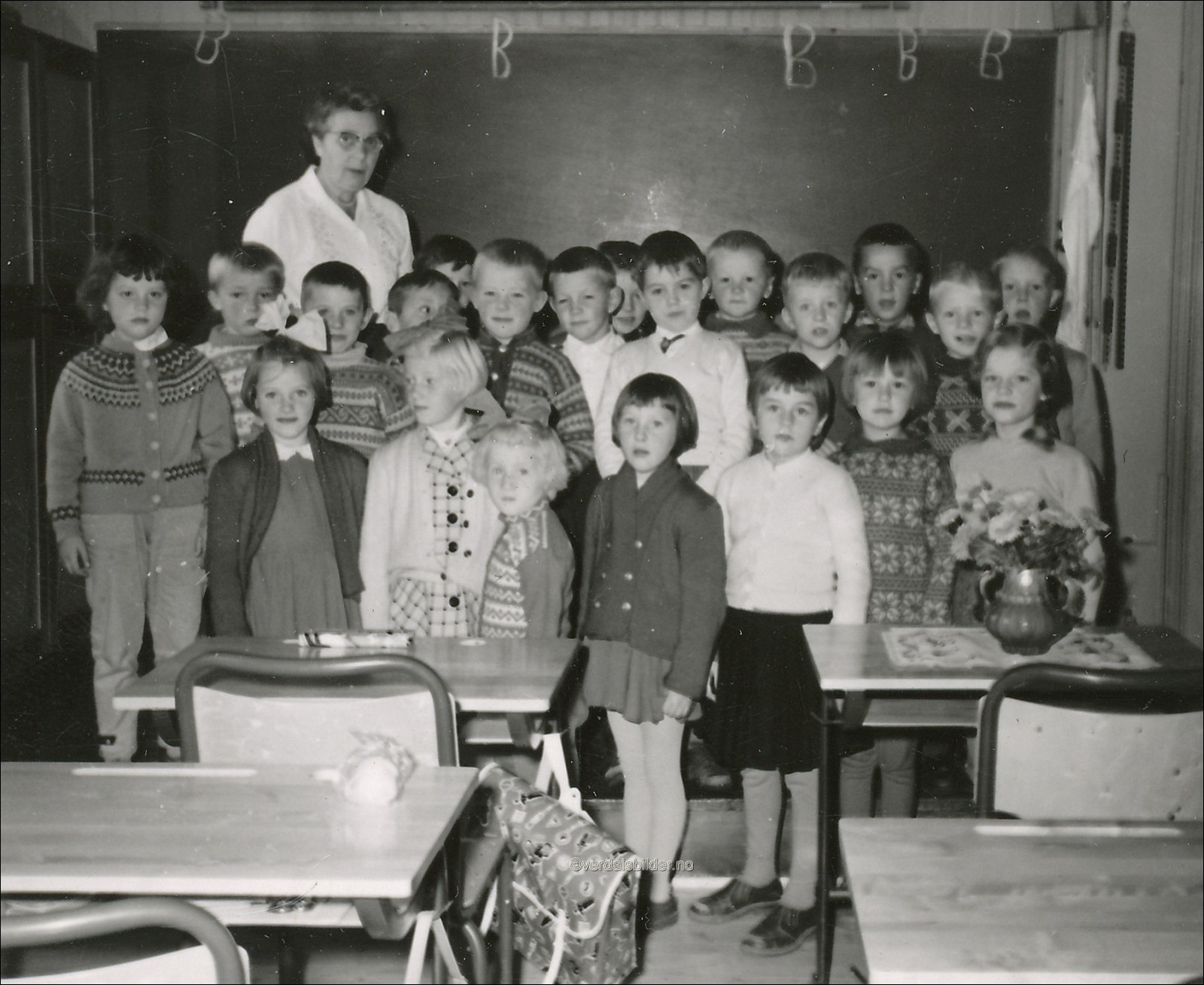 | 1. klasse ved Verdalsøra skole i 1959 .