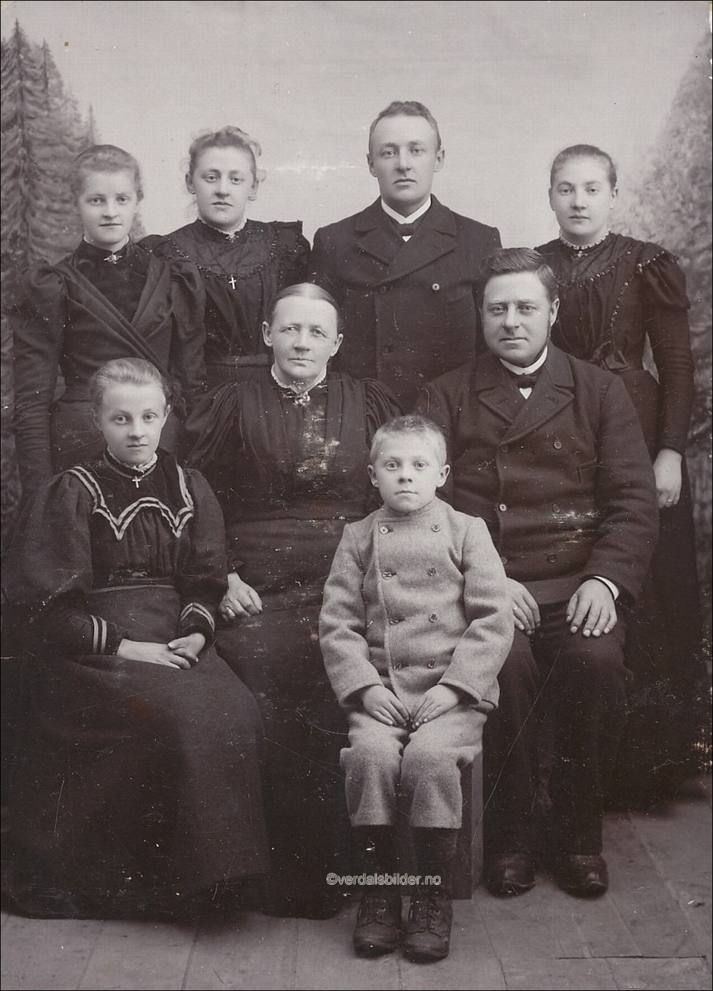 Familien Garnes omkring år 1902 -- Utlånt av Johan Sundby. Hjelp til navna, Magne Årstadvold. Har du korrigeringer, nye navn eller en kommentar? Ring eller send sms til 472 97 311 eller 456 00 950 Det beste er å sende en E-post til: post@verdalsbilder.no Tips noen om dette bildet : Klikk her Forstørre bildet Bruk ctrl-knapp + musehjul oppover for å forstørre bildet. Bruk ctrl-knapp + musehjul nedover for å forminske bildet Du kan også bruke "ctrl-knapp" samtidig med "+" og "-" på det numeriske tastaturet. "Ctrl" og "*" (eller null) tilbakestiller størrelsen | ||||
