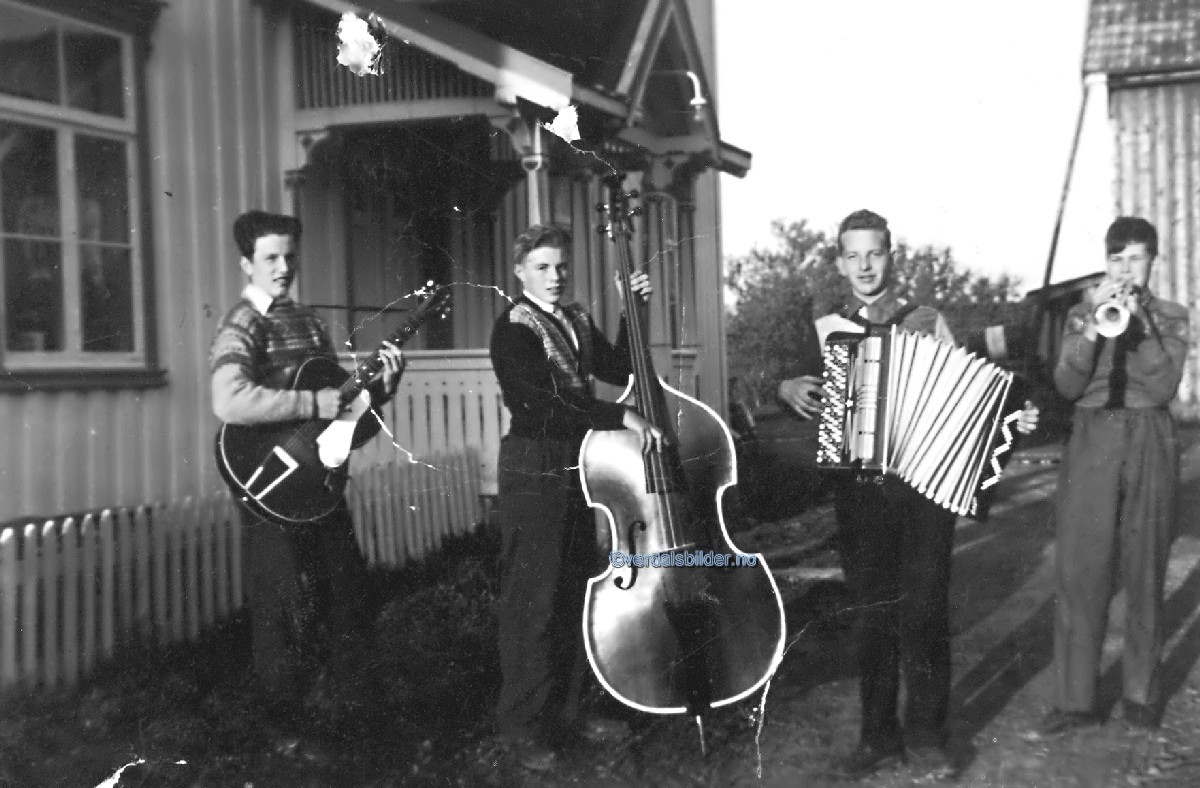 Orkesteret Star Boys fra år 1955 -- Et av danseorkesterene som spilte til dans på forsamlingshusene både i og utenfor Verdal`n.Utlånt og navnsatt av Birgit Liff. Har du korrigeringer, nye navn eller en kommentar? Ring eller send sms til 472 97 311 eller 456 00 950 Det beste er å sende en E-post til: post@verdalsbilder.no Tips noen om dette bildet : Klikk her Forstørre bildet Bruk ctrl-knapp + musehjul oppover for å forstørre bildet. Bruk ctrl-knapp + musehjul nedover for å forminske bildet Du kan også bruke "ctrl-knapp" samtidig med "+" og "-" på det numeriske tastaturet. "Ctrl" og "*" (eller null) tilbakestiller størrelsen | ||||