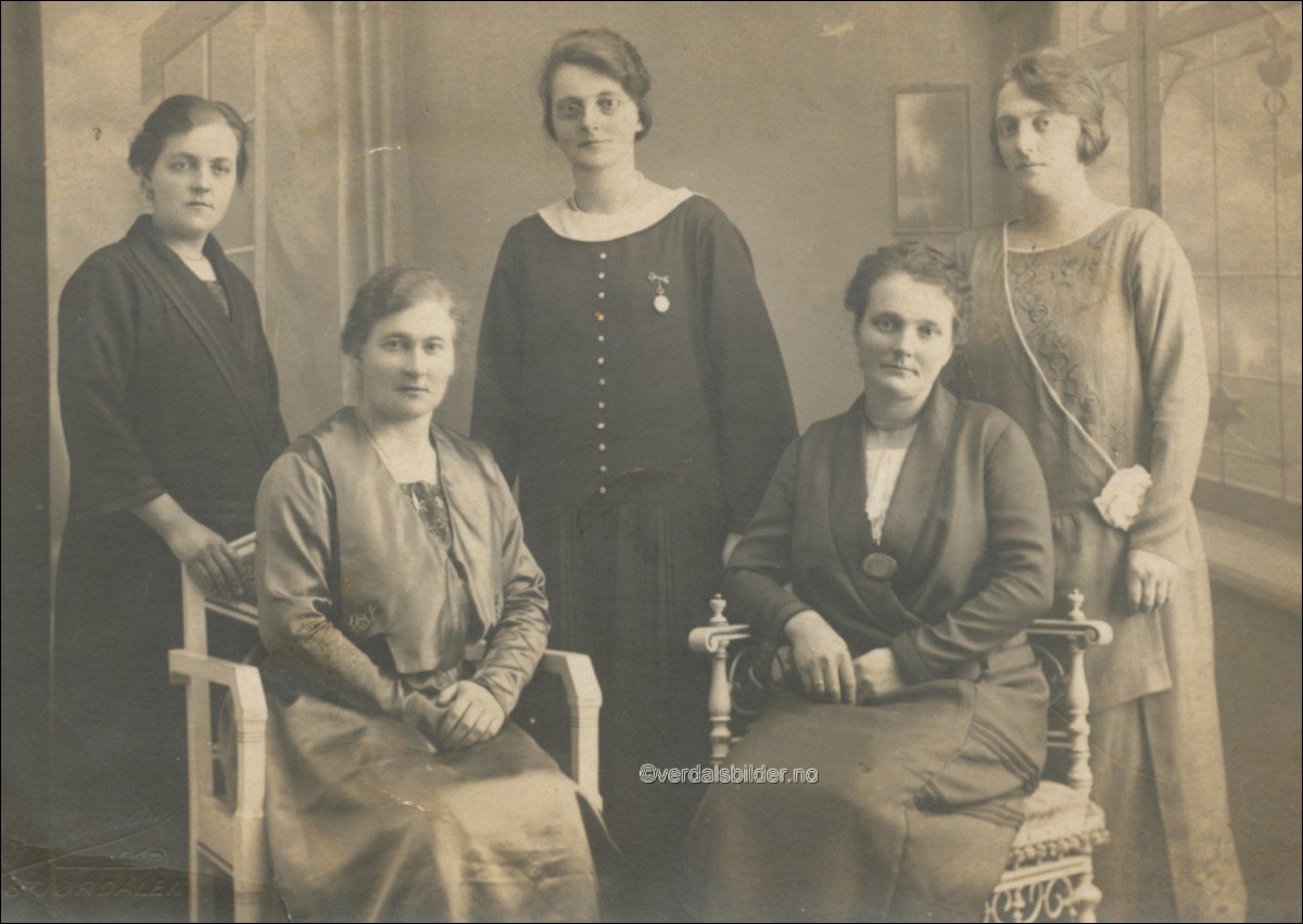 Fem søstre født på Bunes i perioden 1886 - 1899. Bilder fra omkring 1920. -- Faren, Anders Johnsen Halseth som var eier av Bunes fram i periode 1886 - 1907. Deretter og fram til Marie og Johan Vikaunet tok over Bunes i 1914 var enken Gunhild driver. Datteren og ektemannen haddde gården til 1923. Da flyttet alle søstrene og mora til Stjørdal. Mor til Halseth-søstrene var fødd Kausmo og var gift Halseth. Søstrene blir søskenbarn med Anton M. Kjeldset. Utlånt med navn fra Jørgen Johnsen.