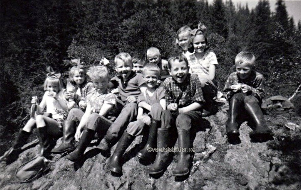 | Elever fra Ness skole på tur til Bjørkvatnet år 1963.