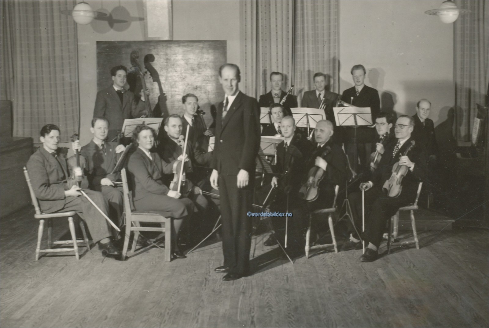 Verdal Orkesterforening omkring 1952. -- Utlånt og navnsatt av Liv Storhaug. Har du korrigeringer, nye navn eller en kommentar? Ring eller send sms til 472 97 311 eller 456 00 950 Det beste er å sende en E-post til: post@verdalsbilder.no Tips noen om dette bildet : Klikk her Forstørre bildet Bruk ctrl-knapp + musehjul oppover for å forstørre bildet. Bruk ctrl-knapp + musehjul nedover for å forminske bildet Du kan også bruke "ctrl-knapp" samtidig med "+" og "-" på det numeriske tastaturet. "Ctrl" og "*" (eller null) tilbakestiller størrelsen | ||||