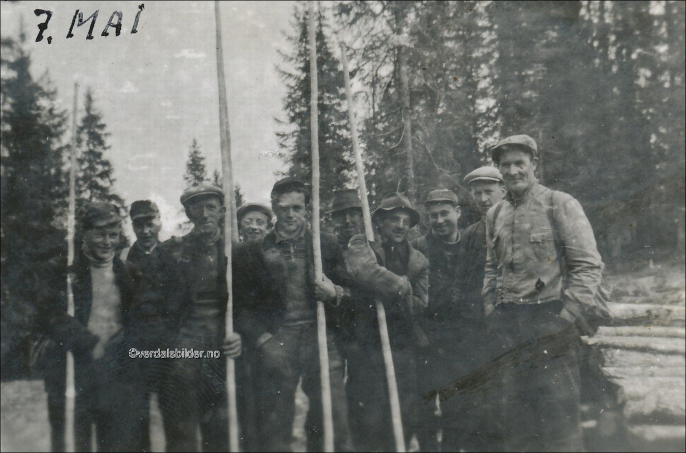 Fløtere i Trongdøla 7. mai 1945 . -- Utlånt av Jostein Molden. Hjelp til navna, Magne Årstadvold.