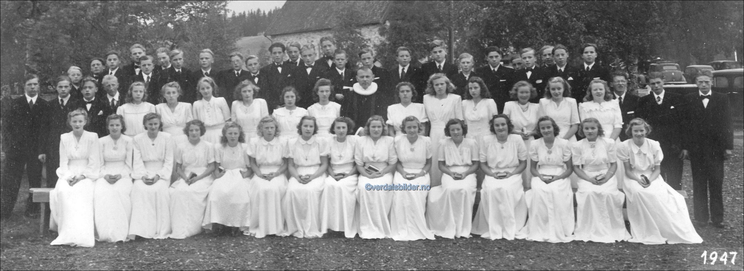 Konfirmasjon på Stiklestad i år 1947 . -- Utlånt av Verdal bibliotek, navnsatt av Solveig Ness og Jørgen Johnsen m.fl. Har du korrigeringer, nye navn eller en kommentar? Ring eller send sms til 472 97 311 eller 456 00 950 Det beste er å sende en E-post til: post@verdalsbilder.no Tips noen om dette bildet : Klikk her Forstørre bildet Bruk ctrl-knapp + musehjul oppover for å forstørre bildet. Bruk ctrl-knapp + musehjul nedover for å forminske bildet Du kan også bruke "ctrl-knapp" samtidig med "+" og "-" på det numeriske tastaturet. "Ctrl" og "*" (eller null) tilbakestiller størrelsen | ||||