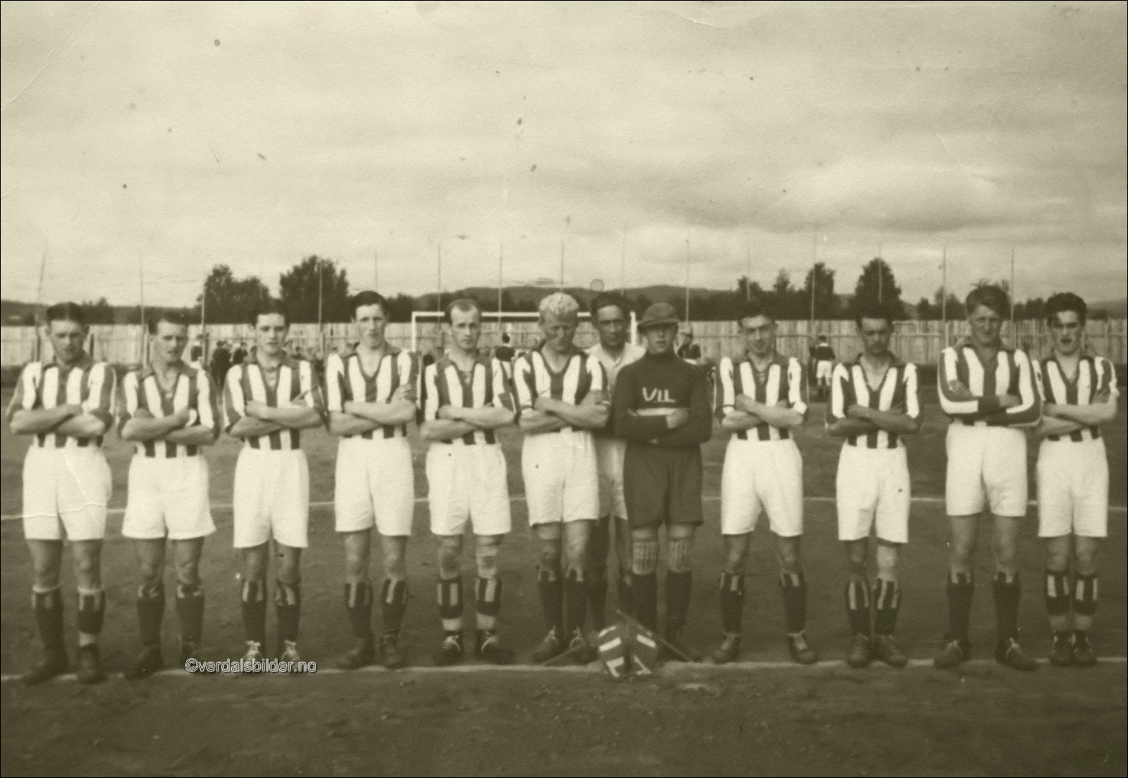 Verdal idrettslag`s A-lag i 1935 -- Bildet er fra Verdal Stadion før en fotballkamp mot Jevnaker hvor Verdal tapte 3 -0. Utlånt av Gunnar Storhaug. Hjelp til navna av Jarbjørg Storhaug. Har du korrigeringer, nye navn eller en kommentar? Ring eller send sms til 472 97 311 eller 456 00 950 Det beste er å sende en E-post til: post@verdalsbilder.no Tips noen om dette bildet : Klikk her Forstørre bildet Bruk ctrl-knapp + musehjul oppover for å forstørre bildet. Bruk ctrl-knapp + musehjul nedover for å forminske bildet Du kan også bruke "ctrl-knapp" samtidig med "+" og "-" på det numeriske tastaturet. "Ctrl" og "*" (eller null) tilbakestiller størrelsen | ||||