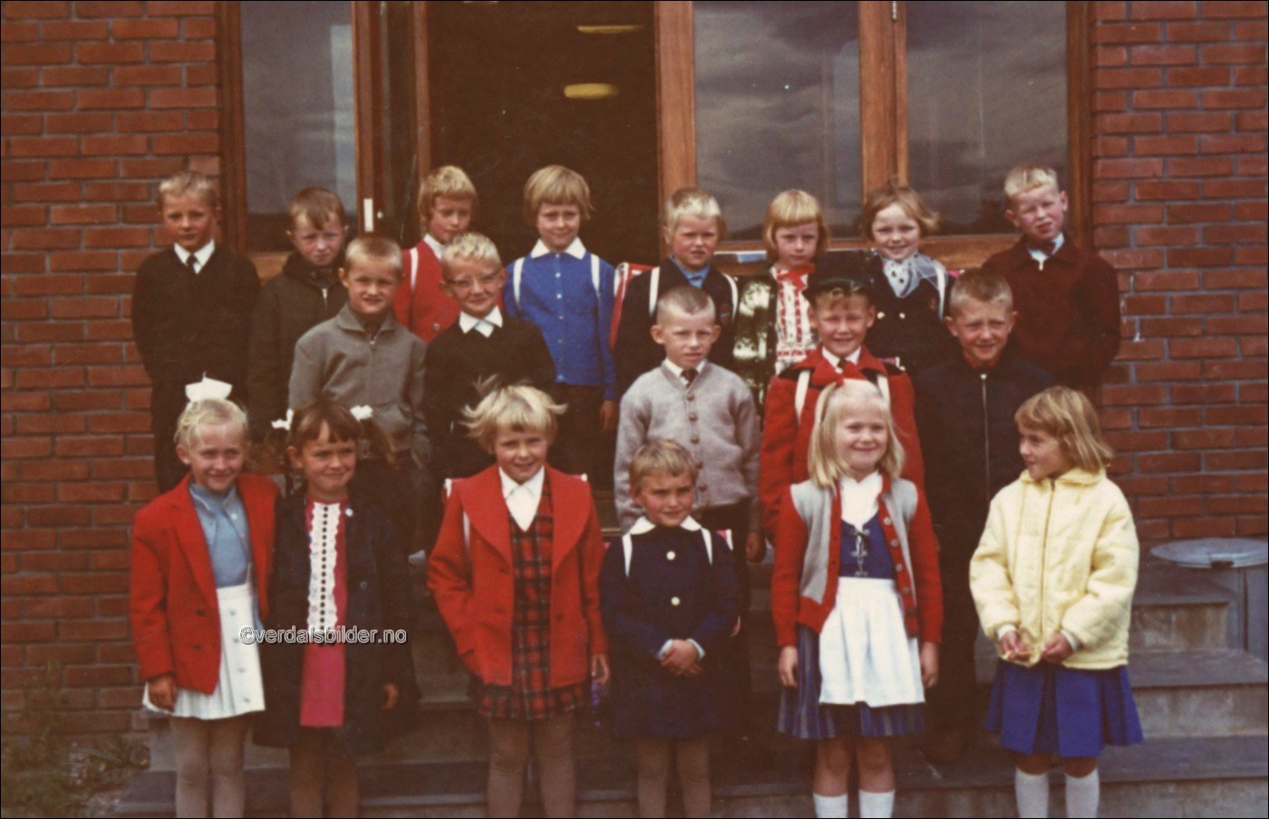 Første klasse ved Verdalsøra skole på trappa til kommunens paviljongbygg i år 1964 -- Utlånt med navn av Liv Liberg. Hjelp til plassering av navn Randi Bjørgvik. Har du korrigeringer, nye navn eller en kommentar? Ring eller send sms til 472 97 311 eller 456 00 950 Det beste er å sende en E-post til: post@verdalsbilder.no Tips noen om dette bildet : Klikk her Forstørre bildet Bruk ctrl-knapp + musehjul oppover for å forstørre bildet. Bruk ctrl-knapp + musehjul nedover for å forminske bildet Du kan også bruke "ctrl-knapp" samtidig med "+" og "-" på det numeriske tastaturet. "Ctrl" og "*" (eller null) tilbakestiller størrelsen | ||||