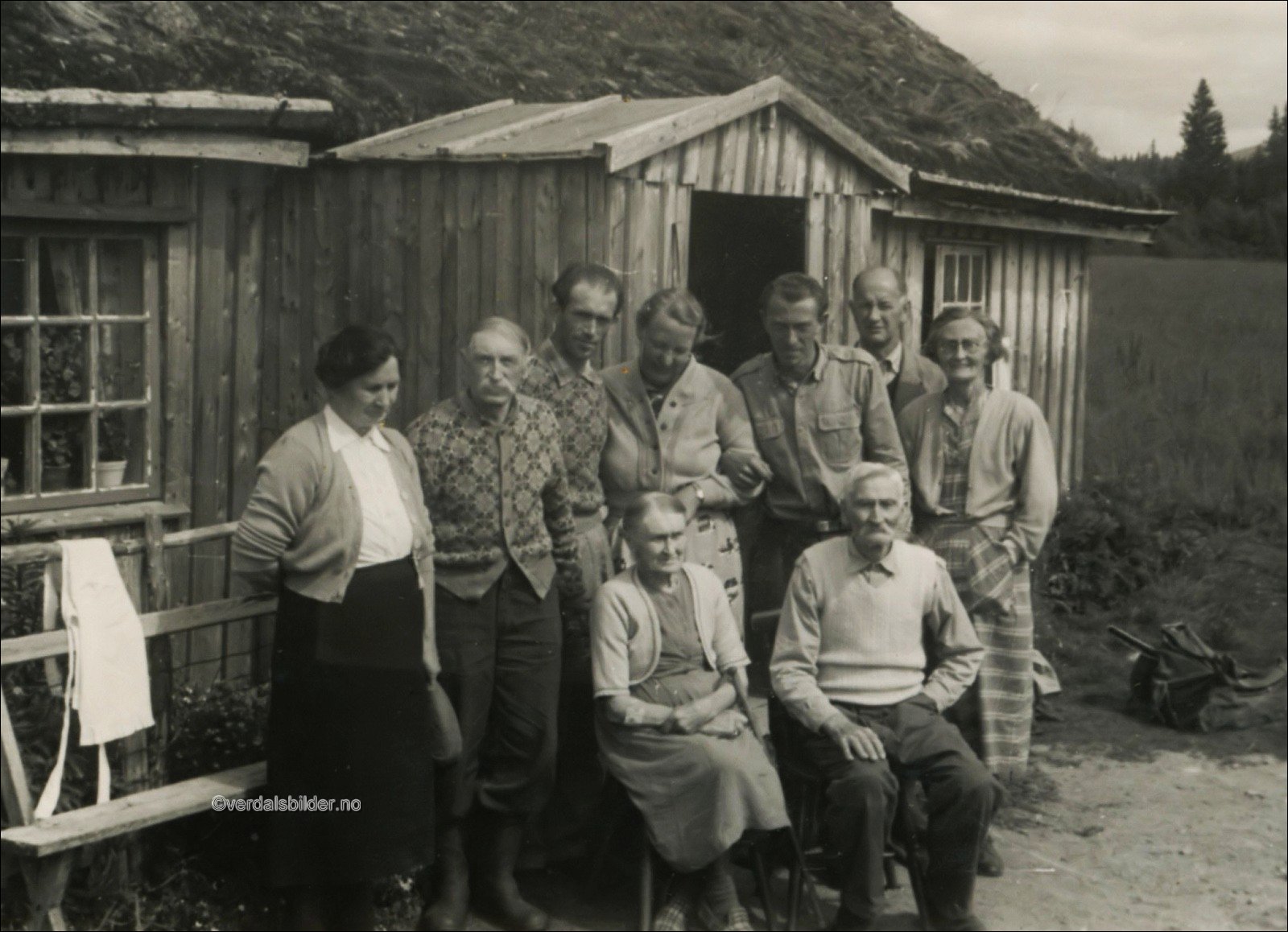 Foran inngangen på Sisselvollen omkring 1955 . -- De to ukjente er gjester. Utlånt og navnsatt av Birger Sisselvold. Har du korrigeringer, nye navn eller en kommentar? Ring eller send sms til 472 97 311 eller 456 00 950 Det beste er å sende en E-post til: post@verdalsbilder.no Tips noen om dette bildet : Klikk her Forstørre bildet Bruk ctrl-knapp + musehjul oppover for å forstørre bildet. Bruk ctrl-knapp + musehjul nedover for å forminske bildet Du kan også bruke "ctrl-knapp" samtidig med "+" og "-" på det numeriske tastaturet. "Ctrl" og "*" (eller null) tilbakestiller størrelsen | ||||