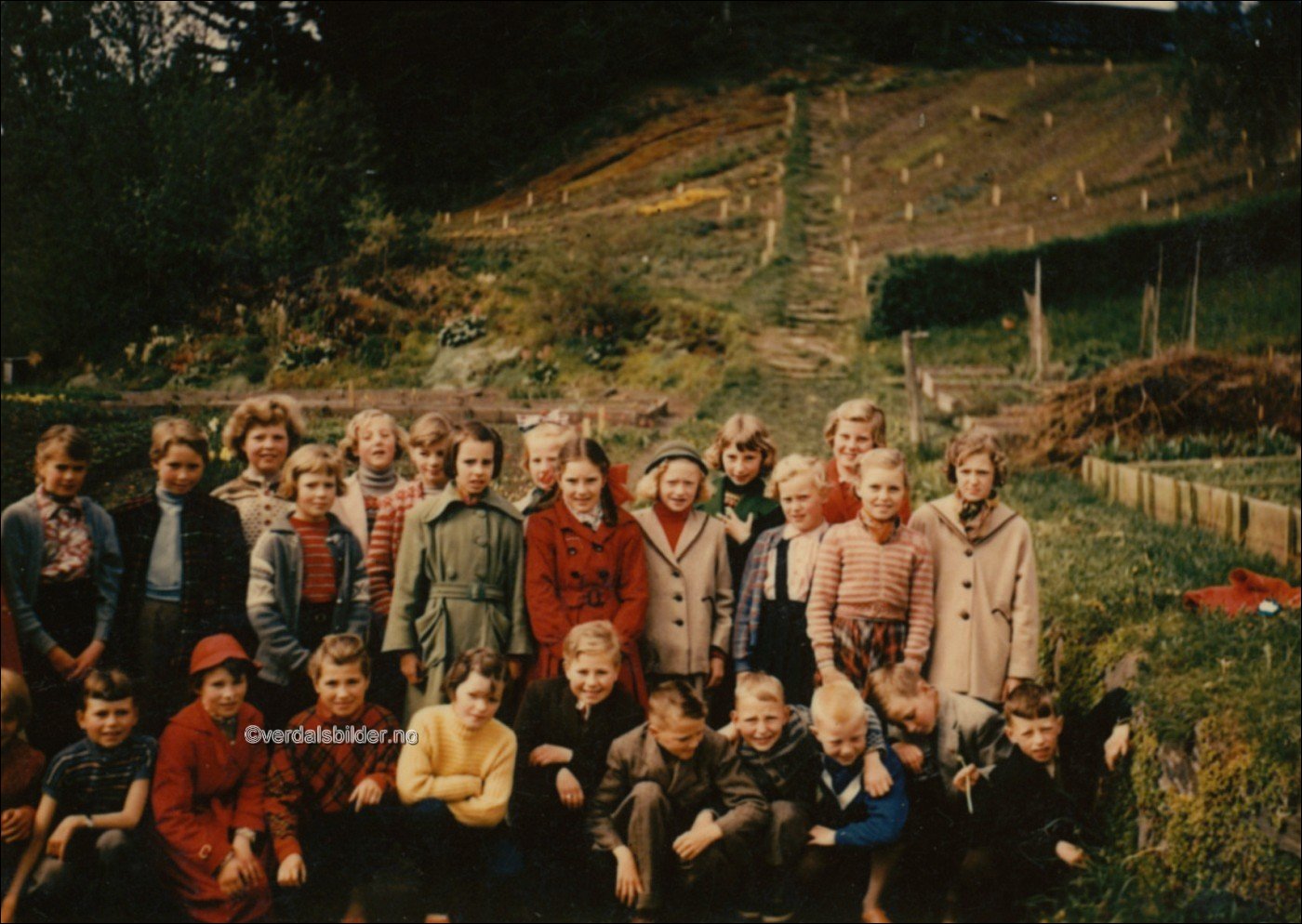| 4. klasse på Verdalsøra skole på Staup hagebruksskole i år 1956.