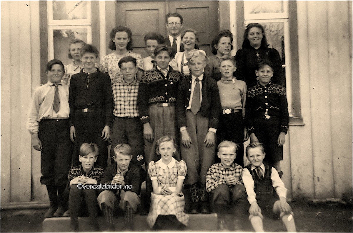 Elever ved Sør-Leksdal skole i 1943 -- Utlånt av Oddlaug Sende. Hjelp med navnsettingen, Oddbjørn Øgstad. Har du korrigeringer, nye navn eller en kommentar? Ring eller send sms til 472 97 311 eller 456 00 950 Det beste er å sende en E-post til: post@verdalsbilder.no Tips noen om dette bildet : Klikk her Forstørre bildet Bruk ctrl-knapp + musehjul oppover for å forstørre bildet. Bruk ctrl-knapp + musehjul nedover for å forminske bildet Du kan også bruke "ctrl-knapp" samtidig med "+" og "-" på det numeriske tastaturet. "Ctrl" og "*" (eller null) tilbakestiller størrelsen | ||||