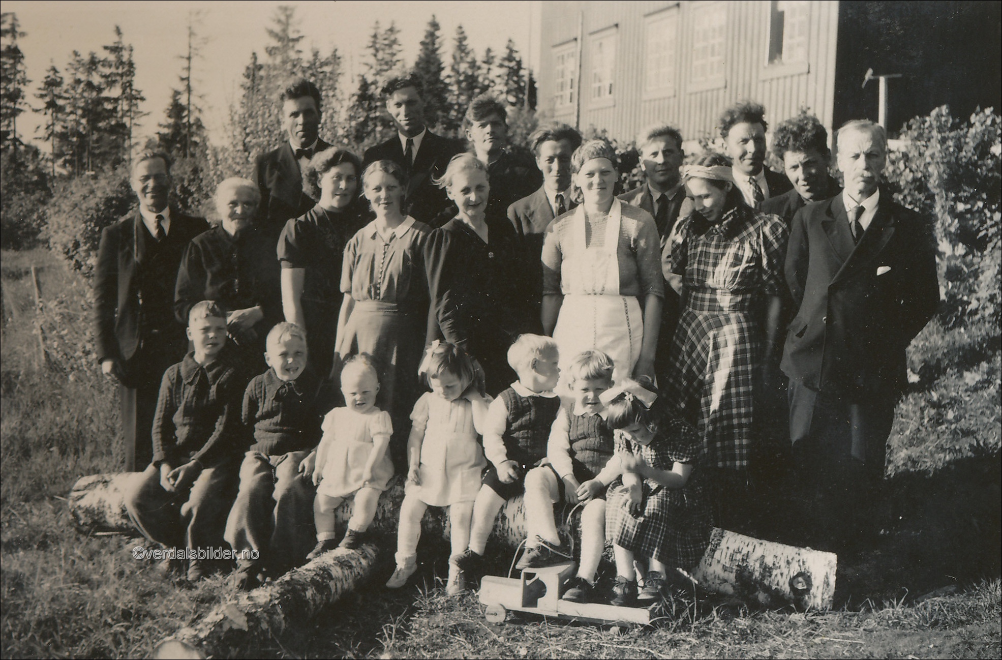 Barnedåp på Bergan i juni år 1947 -- Dåpsbarnet Astrid Musum er er ikke med på bildet. Utlånt og navnsatt av Astrid Johanne Green Har du korrigeringer, nye navn eller en kommentar? Ring eller send sms til 472 97 311 eller 456 00 950 Det beste er å sende en E-post til: post@verdalsbilder.no Tips noen om dette bildet : Klikk her Forstørre bildet Bruk ctrl-knapp + musehjul oppover for å forstørre bildet. Bruk ctrl-knapp + musehjul nedover for å forminske bildet Du kan også bruke "ctrl-knapp" samtidig med "+" og "-" på det numeriske tastaturet. "Ctrl" og "*" (eller null) tilbakestiller størrelsen | ||||