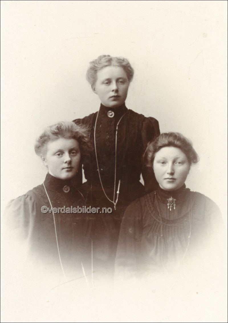 | Tre damer fra Leirådalen omkring år 1915. Se flere navnsatte bilder Før markør opp til haka på personene for å få opp navn |