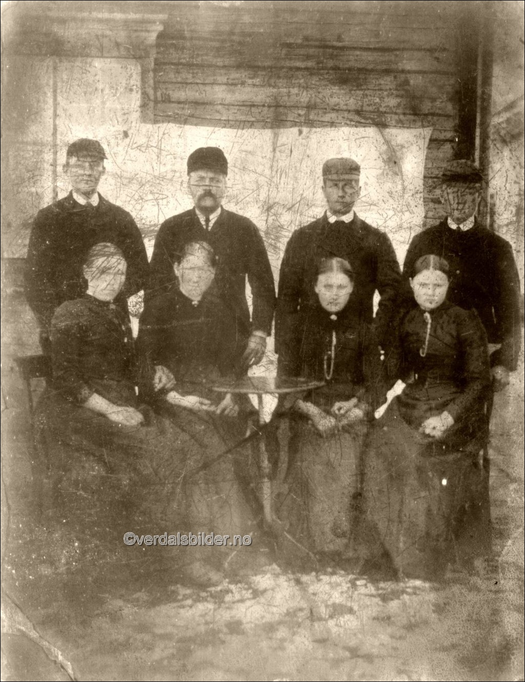 Fire damer og fire herrer fra Vuku/Ulvilla omkring 1880 -- Navna hentet fra utydelig skrift på baksiden av bildet. Derfor noe forbehold om at noen av navna kan være feil. Utlånt av Ella Aune.