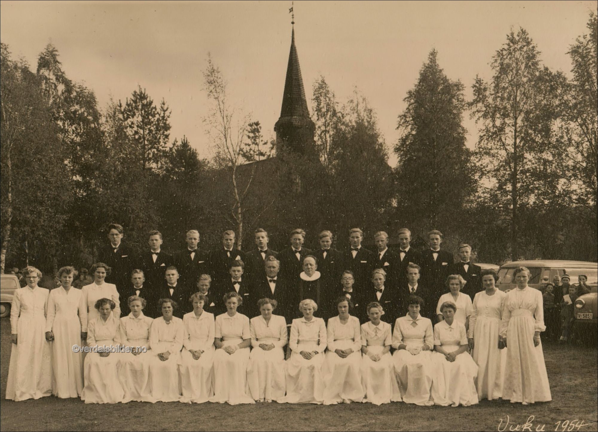 | Konfirmanter ved Vuku kirke i år 1954