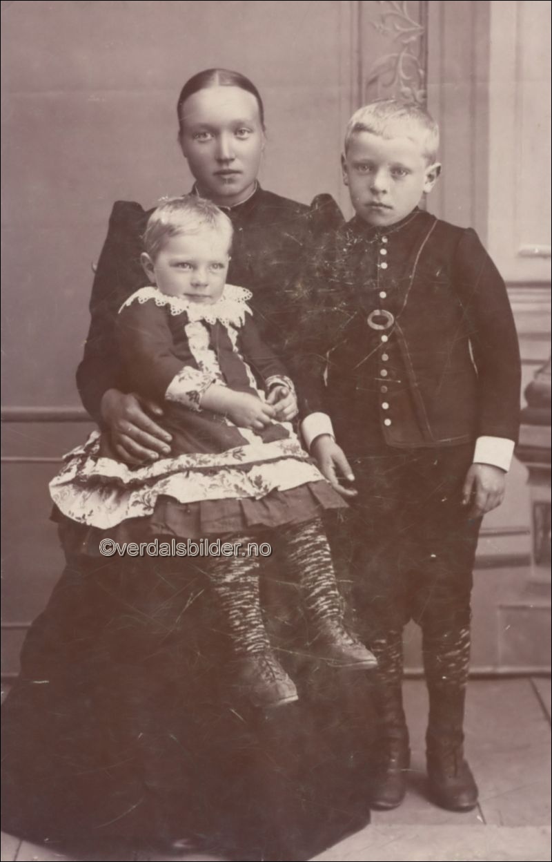 Mor og barn på Molden omkring år 1899. -- Første kona til Jakob Jakobsen Molden på Molden i Inndalen. Hun døde 1901. Utlånt med navna av Nils Stene. Har du korrigeringer, nye navn eller en kommentar? Ring eller send sms til 472 97 311 eller 456 00 950 Det beste er å sende en E-post til: post@verdalsbilder.no Tips noen om dette bildet : Klikk her Forstørre bildet Bruk ctrl-knapp + musehjul oppover for å forstørre bildet. Bruk ctrl-knapp + musehjul nedover for å forminske bildet Du kan også bruke "ctrl-knapp" samtidig med "+" og "-" på det numeriske tastaturet. "Ctrl" og "*" (eller null) tilbakestiller størrelsen. | ||||