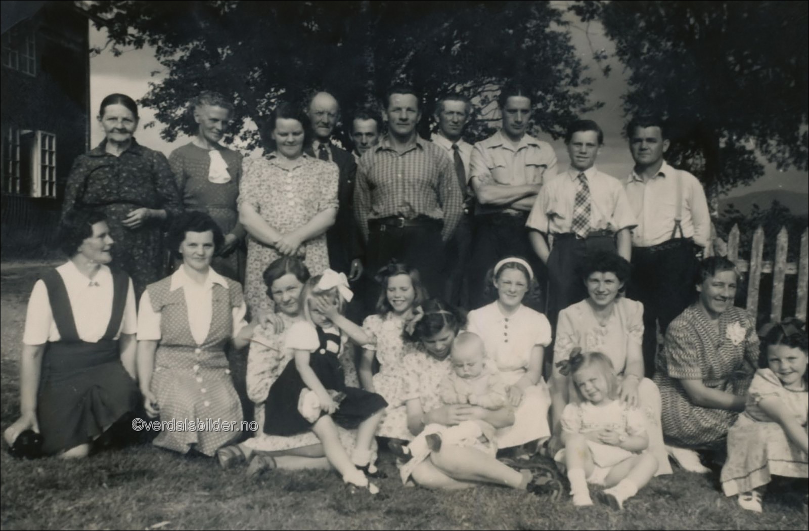Slektninger samlet i Nord-Vera sommeren år 1948 -- Utlånt av Eldbjørg Wæren. Birger og Otelie Sisselvold har bistått med navna. Har du korrigeringer, nye navn eller en kommentar? Ring eller send sms til 472 97 311 eller 456 00 950 Det beste er å sende en E-post til: post@verdalsbilder.no Tips noen om dette bildet : Klikk her Forstørre bildet Bruk ctrl-knapp + musehjul oppover for å forstørre bildet. Bruk ctrl-knapp + musehjul nedover for å forminske bildet Du kan også bruke "ctrl-knapp" samtidig med "+" og "-" på det numeriske tastaturet. "Ctrl" og "*" (eller null) tilbakestiller størrelsen | ||||