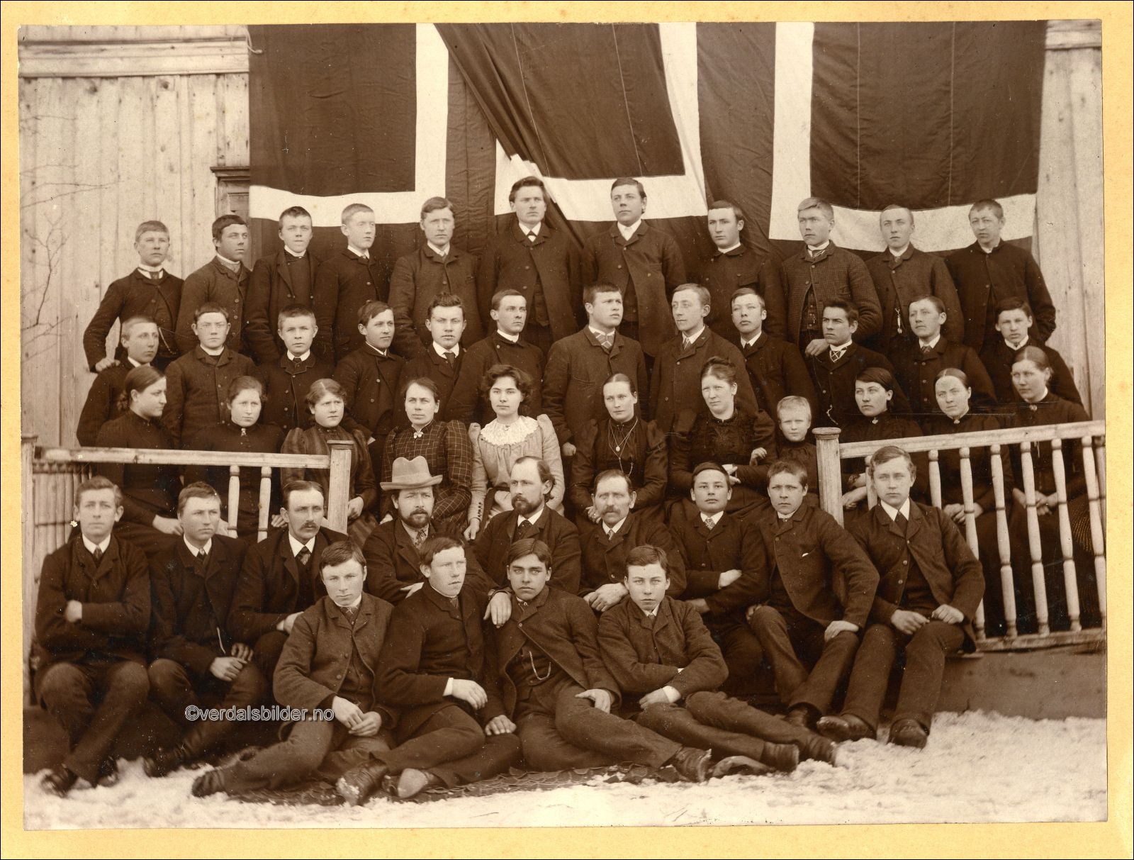Amtskolen på Stiklestad i år 1892 -- Utlånt med navn av Roald Veimo. Usikkert om alle navna er rett på bakerste rekke (færre navn enn personer er oppgitt). Har du korrigeringer, nye navn eller en kommentar? Ring eller send sms til 472 97 311 eller 456 00 950 Det beste er å sende en E-post til: post@verdalsbilder.no Tips noen om dette bildet : Klikk her Forstørre bildet Bruk ctrl-knapp + musehjul oppover for å forstørre bildet. Bruk ctrl-knapp + musehjul nedover for å forminske bildet Du kan også bruke "ctrl-knapp" samtidig med "+" og "-" på det numeriske tastaturet. "Ctrl" og "*" (eller null) tilbakestiller størrelsen | ||||