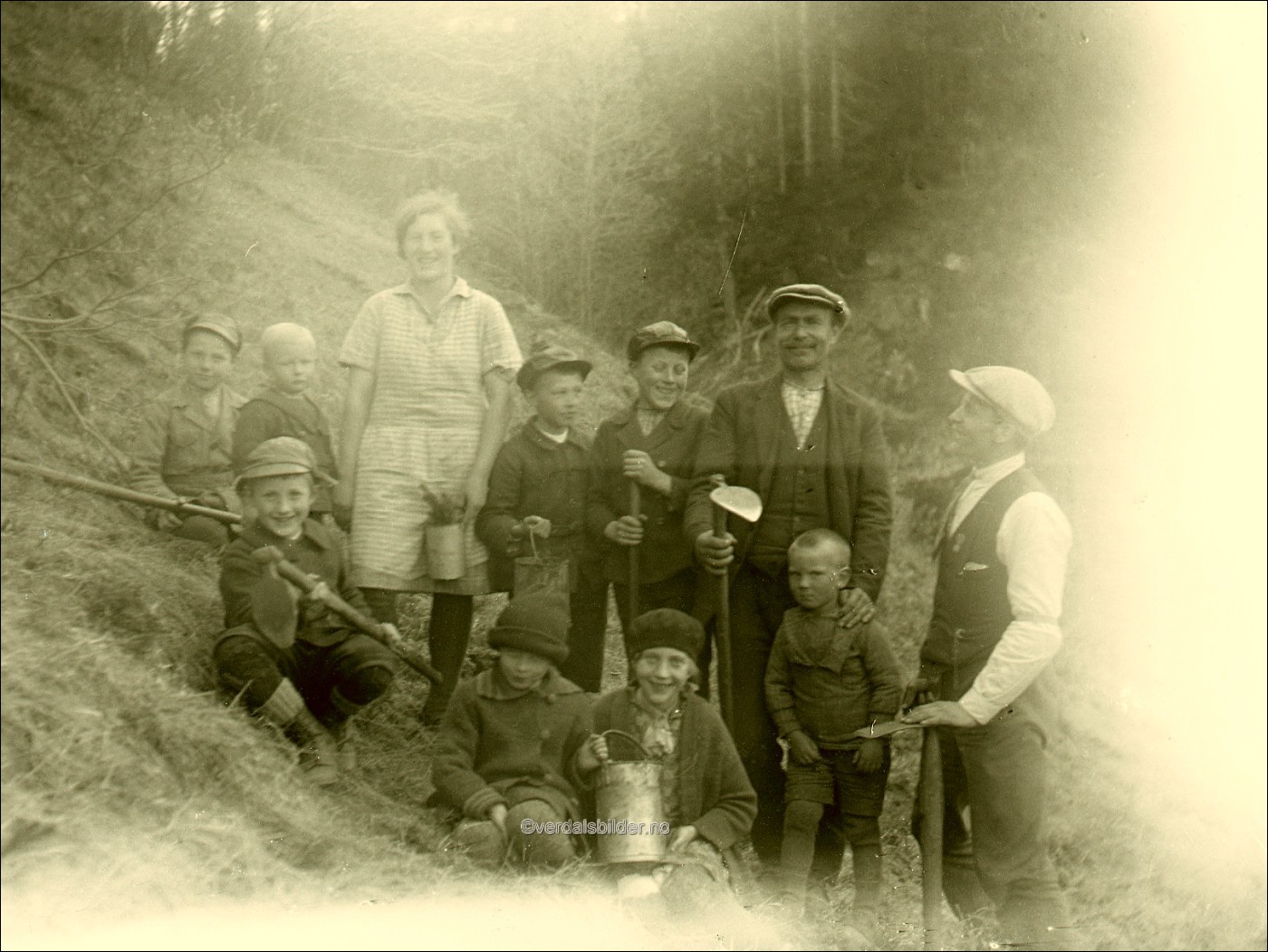 Skogplanting oppi Kleppen omkring år 1932. -- Utlånt av Liv Liberg. Hjelp til navnsetting, Magne Lustad. Har du korrigeringer, nye navn eller en kommentar? Ring eller send sms til 472 97 311 eller 456 00 950 Det beste er å sende en E-post til: post@verdalsbilder.no Tips noen om dette bildet : Klikk her Forstørre bildet Bruk ctrl-knapp + musehjul oppover for å forstørre bildet. Bruk ctrl-knapp + musehjul nedover for å forminske bildet Du kan også bruke "ctrl-knapp" samtidig med "+" og "-" på det numeriske tastaturet. "Ctrl" og "*" (eller null) tilbakestiller størrelsen | ||||