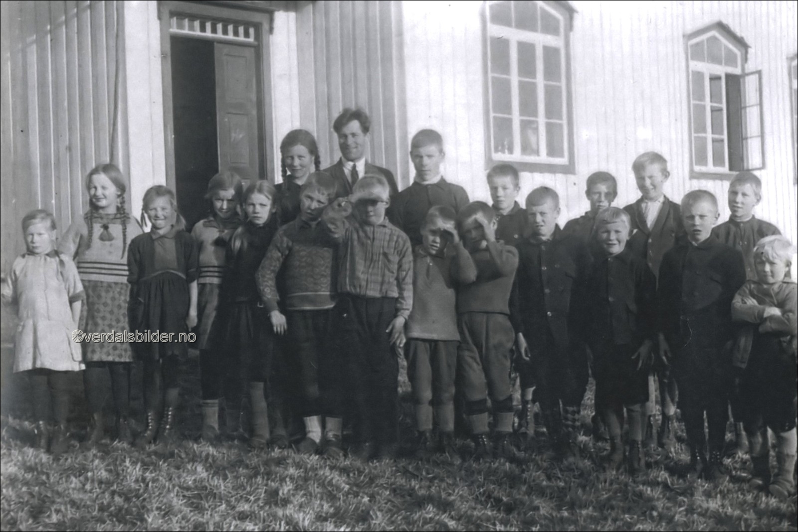 Vera skole med alle elever år 1928 -- Skole i kapellet.Første skoleåret for Anders Vandvik som fast ansatt lærer i Vera. I år 2011, 83 år etter, er det færre fastboende i Vera enn det er elever på dette bilde. Det sier noe om utviklingen i fjellbygda. Utlånt av Liv Liberg. Har du korrigeringer, nye navn eller en kommentar? Ring eller send sms til 472 97 311 eller 456 00 950 Det beste er å sende en E-post til: post@verdalsbilder.no Tips noen om dette bildet : Klikk her Forstørre bildet Bruk ctrl-knapp + musehjul oppover for å forstørre bildet. Bruk ctrl-knapp + musehjul nedover for å forminske bildet Du kan også bruke "ctrl-knapp" samtidig med "+" og "-" på det numeriske tastaturet. "Ctrl" og "*" (eller null) tilbakestiller størrelsen | ||||
