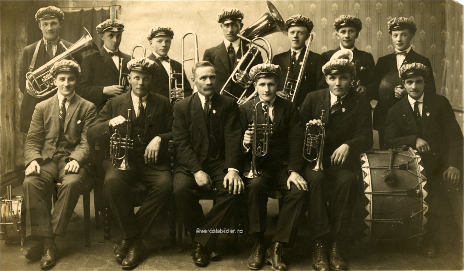 Verdal Arbeiderparti`s Hornmusikkforening omkring år 1925 -- Utlånt med navna av Alf Ivar Solberg. Har du korrigeringer, nye navn eller en kommentar? Ring eller send sms til 472 97 311 eller 456 00 950 Det beste er å sende en E-post til: post@verdalsbilder.no Tips noen om dette bildet : Klikk her Forstørre bildet Bruk ctrl-knapp + musehjul oppover for å forstørre bildet. Bruk ctrl-knapp + musehjul nedover for å forminske bildet Du kan også bruke "ctrl-knapp" samtidig med "+" og "-" på det numeriske tastaturet. "Ctrl" og "*" (eller null) tilbakestiller størrelsen | ||||