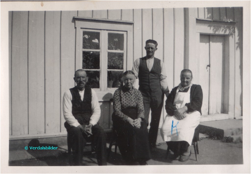 Hos Oluf og Krestianne Larsen på Lillevang på Tinden i år 1940 -- Bergitte Reistad er søster til Krestianna. Hun ble 102 år. Håkon Kolberg er mågen til "vertsfolket". Han var gift med Borghild. Har du korrigeringer, nye navn eller en kommentar? Ring eller send sms til 472 97 311 eller 456 00 950 Det beste er å sende en E-post til: post@verdalsbilder.no Tips noen om dette bildet : Klikk her Forstørre bildet Bruk ctrl-knapp + musehjul oppover for å forstørre bildet. Bruk ctrl-knapp + musehjul nedover for å forminske bildet Du kan også bruke "ctrl-knapp" samtidig med "+" og "-" på det numeriske tastaturet. "Ctrl" og "*" (eller null) tilbakestiller størrelsen | ||||