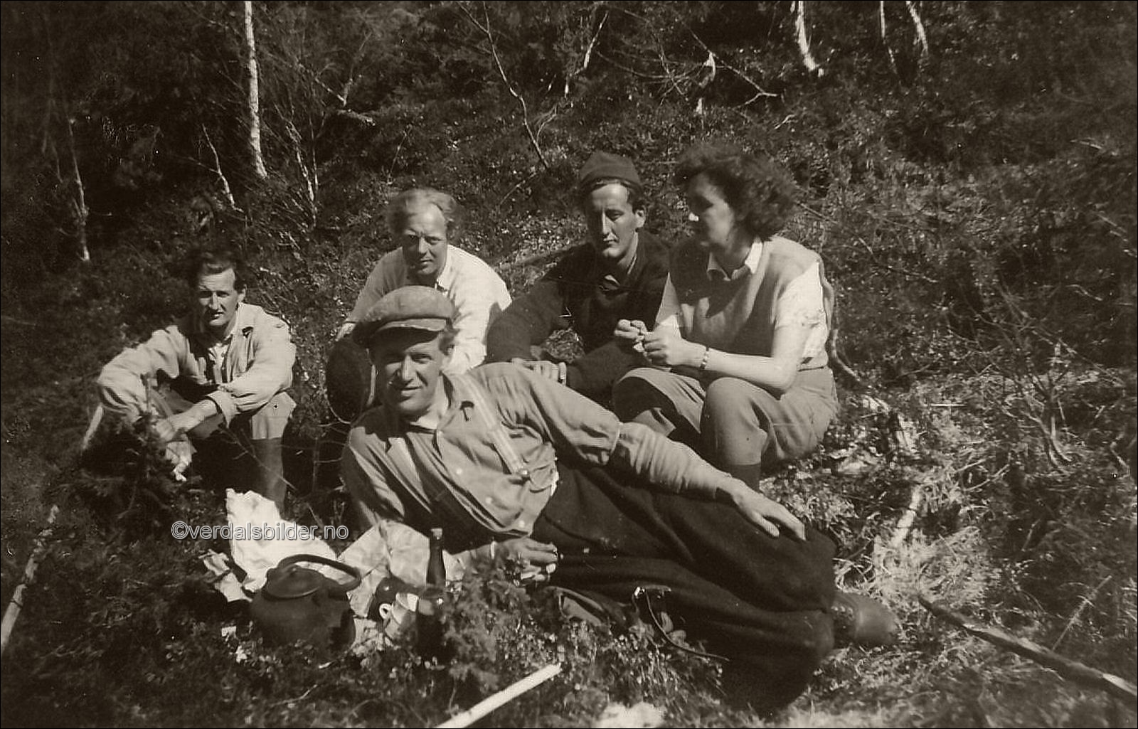 Svartkjelkaffe under skogsarbeid i Sogna omkring år1950. -- Hjelp med navna Magne Årstadvold. Har du korrigeringer, nye navn eller en kommentar? Ring eller send sms til 472 97 311 eller 456 00 950 Det beste er å sende en E-post til: post@verdalsbilder.no Tips noen om dette bildet : Klikk her Forstørre bildet Bruk ctrl-knapp + musehjul oppover for å forstørre bildet. Bruk ctrl-knapp + musehjul nedover for å forminske bildet Du kan også bruke "ctrl-knapp" samtidig med "+" og "-" på det numeriske tastaturet. "Ctrl" og "*" (eller null) tilbakestiller størrelsen | ||||