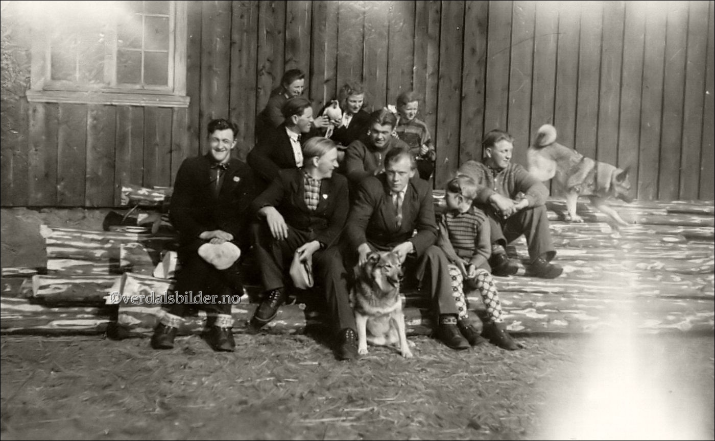 | Dyr og folk på tømmerlund i Jøsås eller Stene omkring år 1944