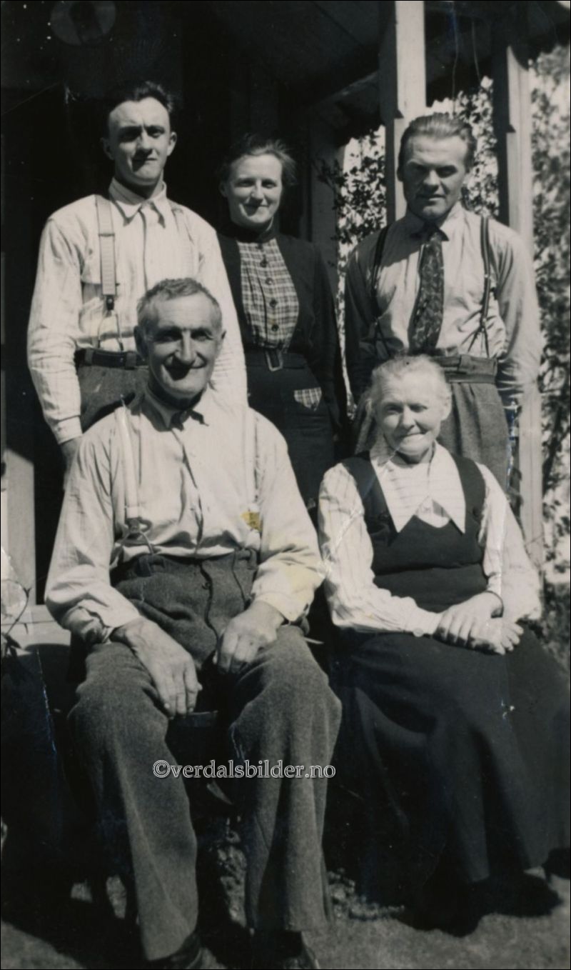 Nord-Stein familien i år 1947. -- Bildet er fra andre pinsedag. Alle tre barna forble ugifte og barnløse. Utlånt av Torbjørn Stene. Navnsatt av Marta Tromsdal. Har du korrigeringer, nye navn eller en kommentar? Ring eller send sms til 472 97 311 eller 456 00 950 Det beste er å sende en E-post til: post@verdalsbilder.no Tips noen om dette bildet : Klikk her Forstørre bildet Bruk ctrl-knapp + musehjul oppover for å forstørre bildet. Bruk ctrl-knapp + musehjul nedover for å forminske bildet Du kan også bruke "ctrl-knapp" samtidig med "+" og "-" på det numeriske tastaturet. "Ctrl" og "*" (eller null) tilbakestiller størrelsen. | ||||