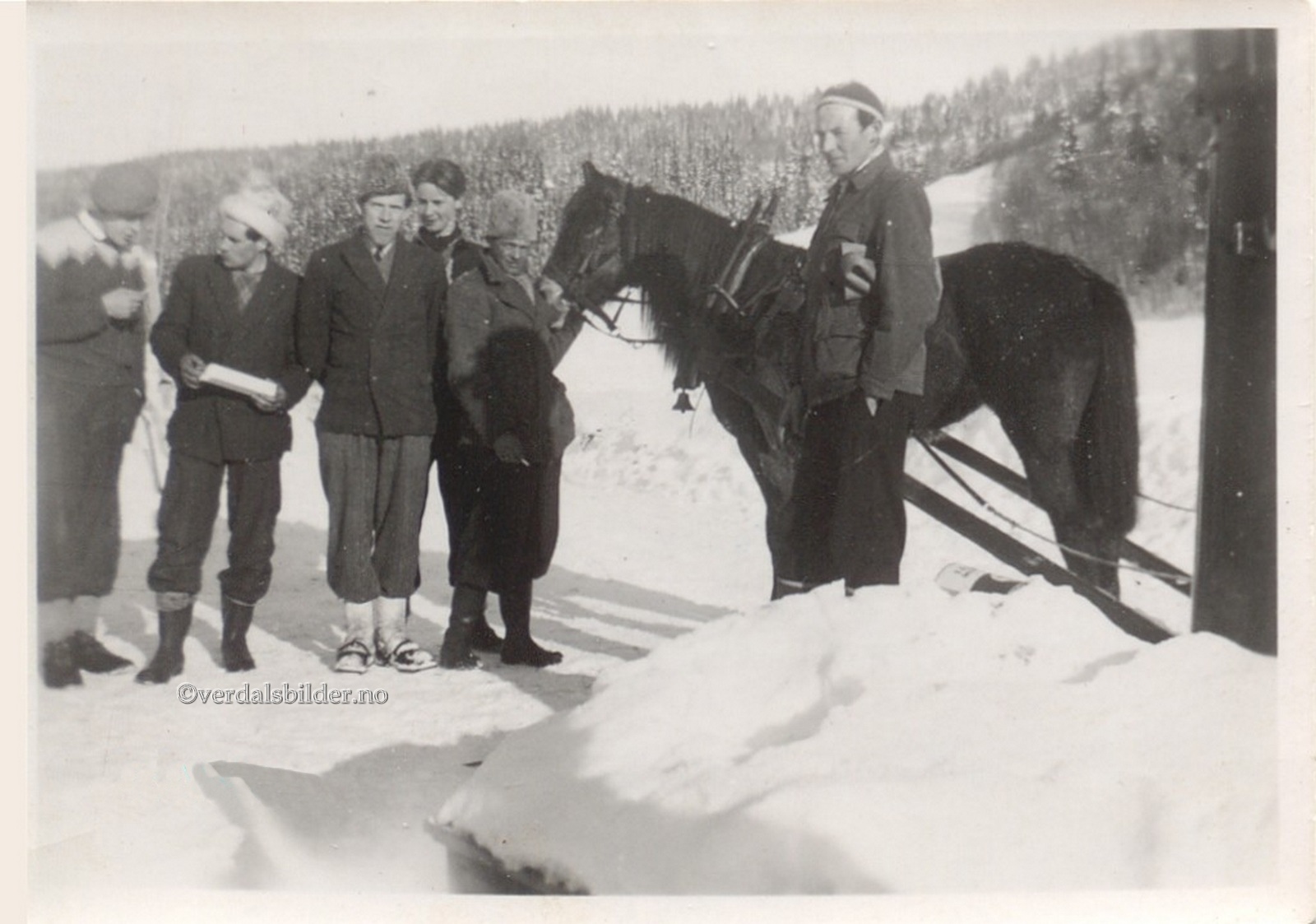 Verdalinger på tømmerhogst i Hegra i 1950 -- Klaus Andersen forteller: Æ å nån ainna kara låg å högg tömmer oppi fjelle i Hegra,(nemme Meraker) i slute av förtitale.De va hain Martin Storhaug som va bas fer gjengen, hain ha me sä sönnin Oddgeir å Magner, mågen Sverre Lerfald, Nils Falstad frå «Brenne» å sönnin hains,Egil å Iver, Paul Gjersing frå Tinna,Ivar Lyng frå Steksta. Stöbb Nilsen å ä,vi va öngstan. Som kokk fer banden ha vi a Kari Bergstad me minsteguten Rolf Har du korrigeringer, nye navn eller en kommentar? Ring eller send sms til 472 97 311 eller 456 00 950 Det beste er å sende en E-post til: post@verdalsbilder.no Tips noen om dette bildet : Klikk her Forstørre bildet Bruk ctrl-knapp + musehjul oppover for å forstørre bildet. Bruk ctrl-knapp + musehjul nedover for å forminske bildet Du kan også bruke "ctrl-knapp" samtidig med "+" og "-" på det numeriske tastaturet. "Ctrl" og "*" (eller null) tilbakestiller størrelsen | ||||