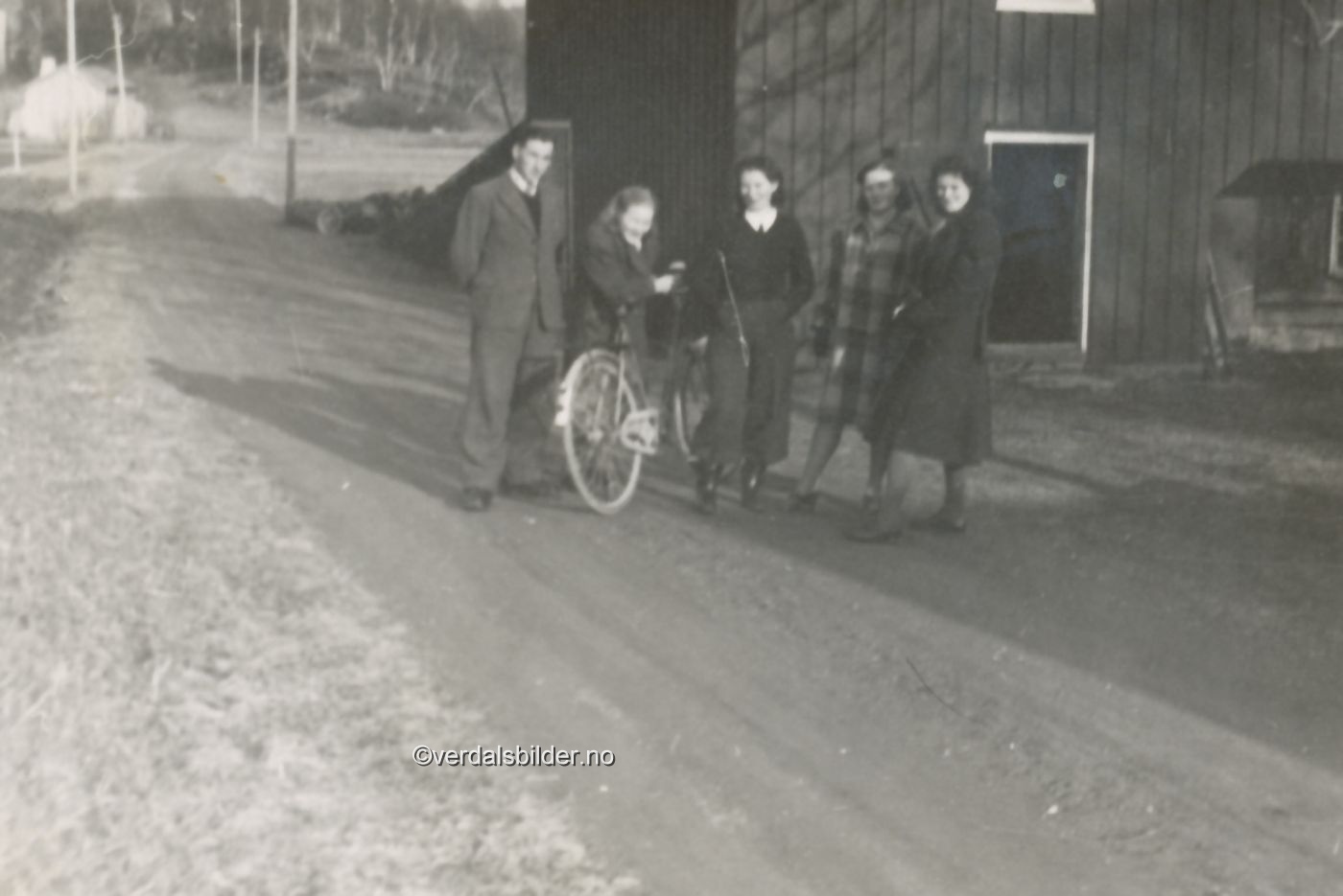 Ungdommer ved Ranheim i Sjøbygda omkring år 1946 -- I bakgrunnen ses Pålstu som sto der vegen opp Råalia tar av Volhaugvegen. Utlånt av Torlaug Sivertsen. Har du korrigeringer, nye navn eller en kommentar? Ring eller send sms til 472 97 311 eller 456 00 950 Det beste er å sende en E-post til: post@verdalsbilder.no Tips noen om dette bildet : Klikk her Forstørre bildet Bruk ctrl-knapp + musehjul oppover for å forstørre bildet. Bruk ctrl-knapp + musehjul nedover for å forminske bildet Du kan også bruke "ctrl-knapp" samtidig med "+" og "-" på det numeriske tastaturet. "Ctrl" og "*" (eller null) tilbakestiller størrelsen | ||||