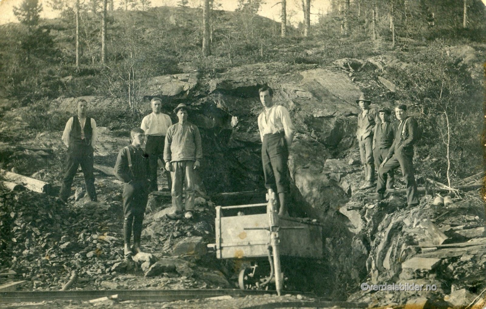 Fra driften i Åkervolden Gruver Malsådalen omkring år 1917 -- Undersøkelsestoll inn til synken i Rørosgruva.Utlånt av Svein Berg. Navna hentet fra Helgådalens Bildearkiv. Har du korrigeringer, nye navn eller en kommentar? Ring eller send sms til 472 97 311 eller 456 00 950 Det beste er å sende en E-post til: post@verdalsbilder.no Tips noen om dette bildet : Klikk her Forstørre bildet Bruk ctrl-knapp + musehjul oppover for å forstørre bildet. Bruk ctrl-knapp + musehjul nedover for å forminske bildet Du kan også bruke "ctrl-knapp" samtidig med "+" og "-" på det numeriske tastaturet. "Ctrl" og "*" (eller null) tilbakestiller størrelsen | ||||